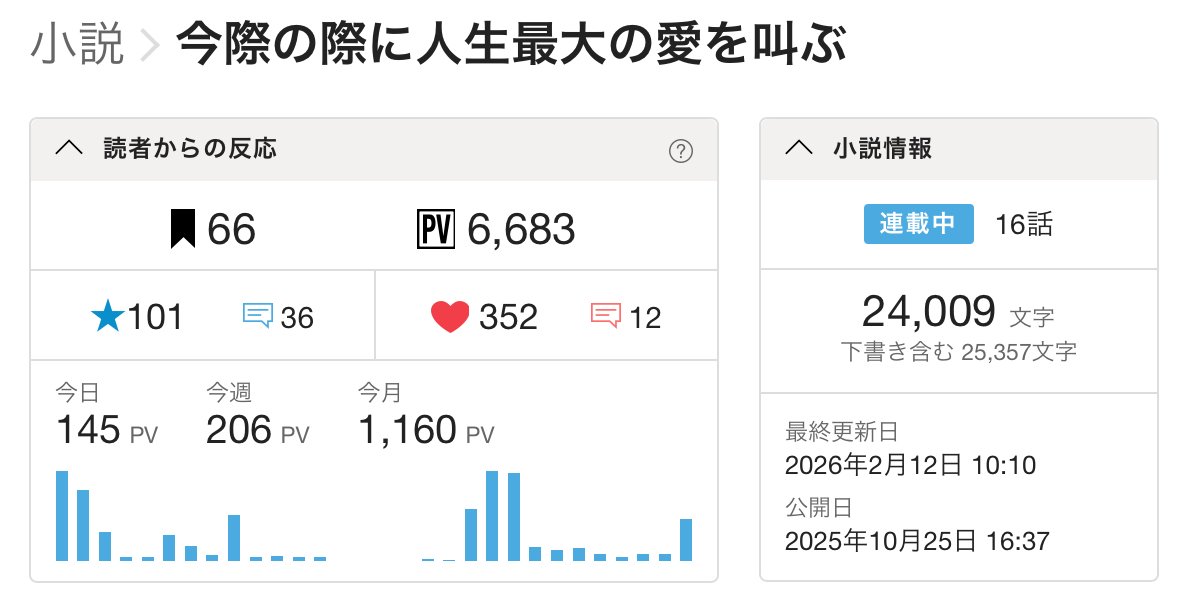 先ほど拙作今際の際に人生最大の愛を叫ぶが、
