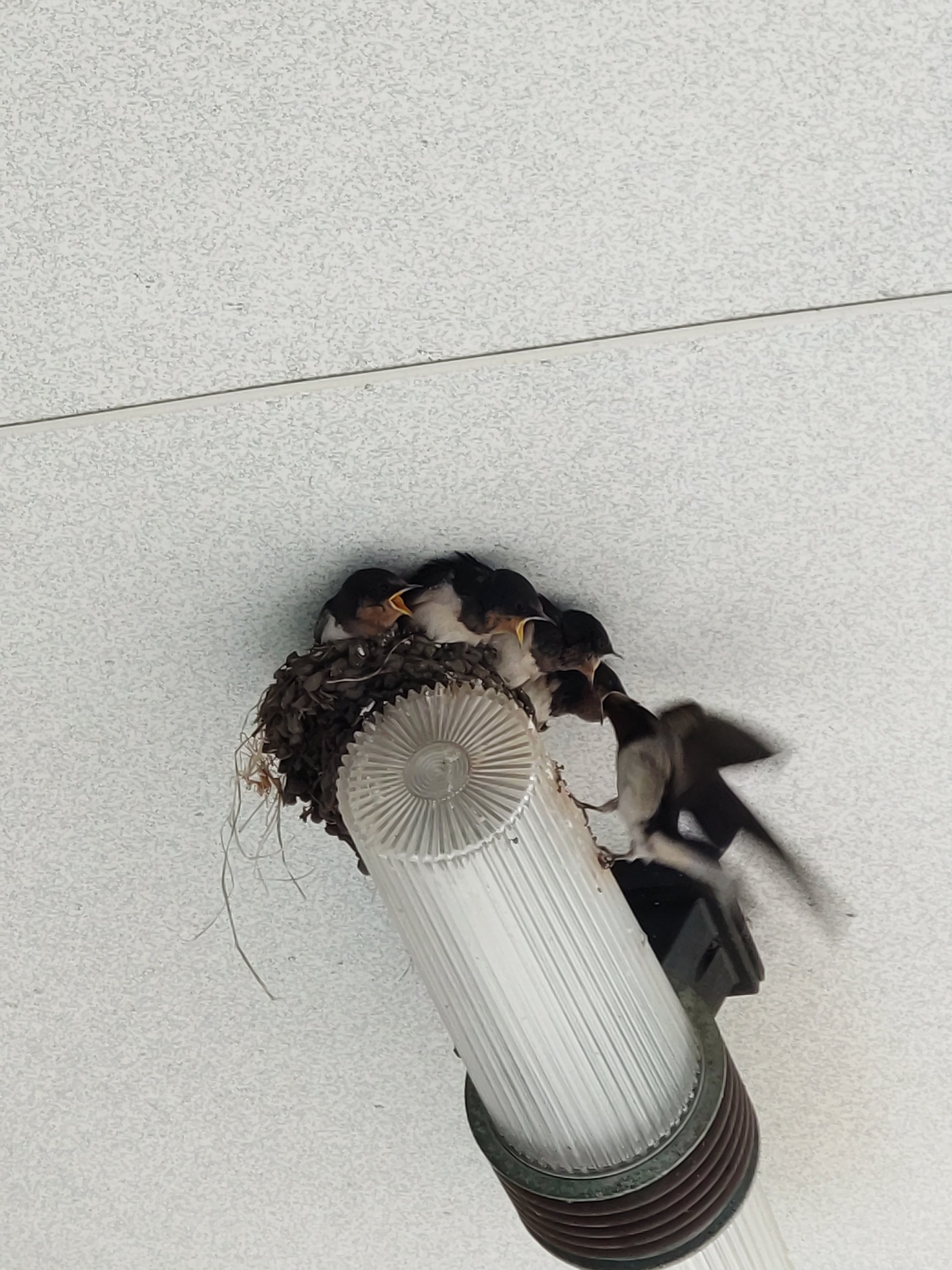 朝起きると、軒下のツバメたちがものすごく騒いでいたという。