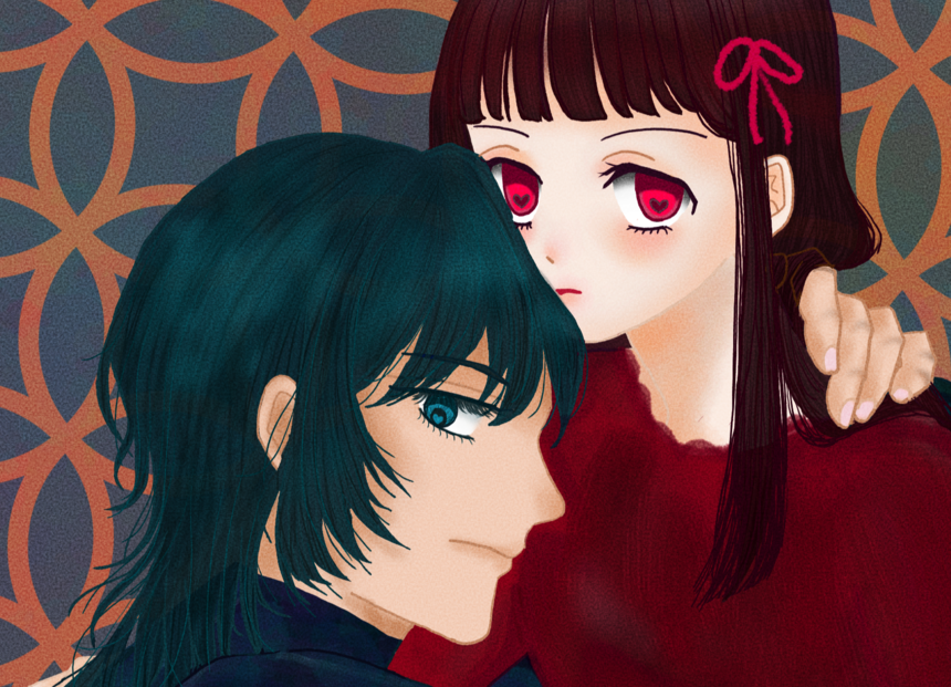 青年の姿をした水の宇宙人マナブと少女の姿をした破壊の概念インテリタスの創作男女カップリングです。キャッチフレーズはスライムおにロリです。