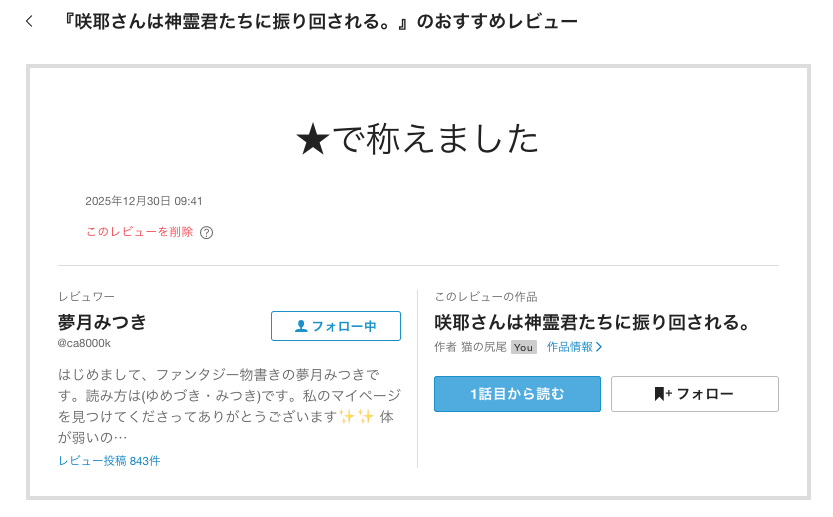 夢月みつき様よりレヴューコメントをいただきました。
