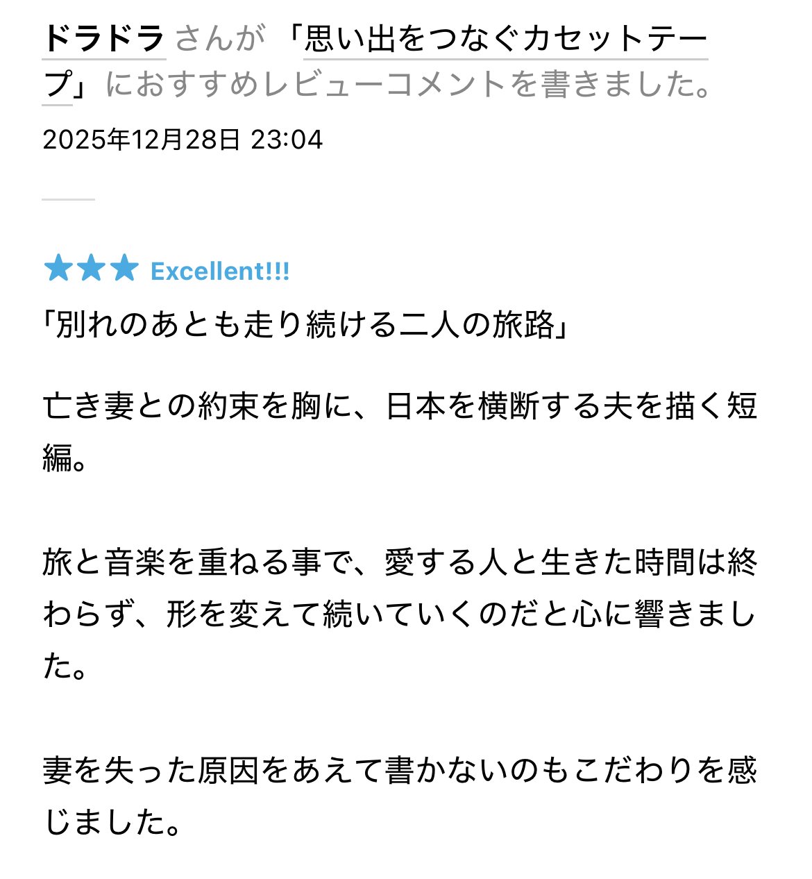 ドラドラさんから私の作品におすすめレビューをいただきました😊