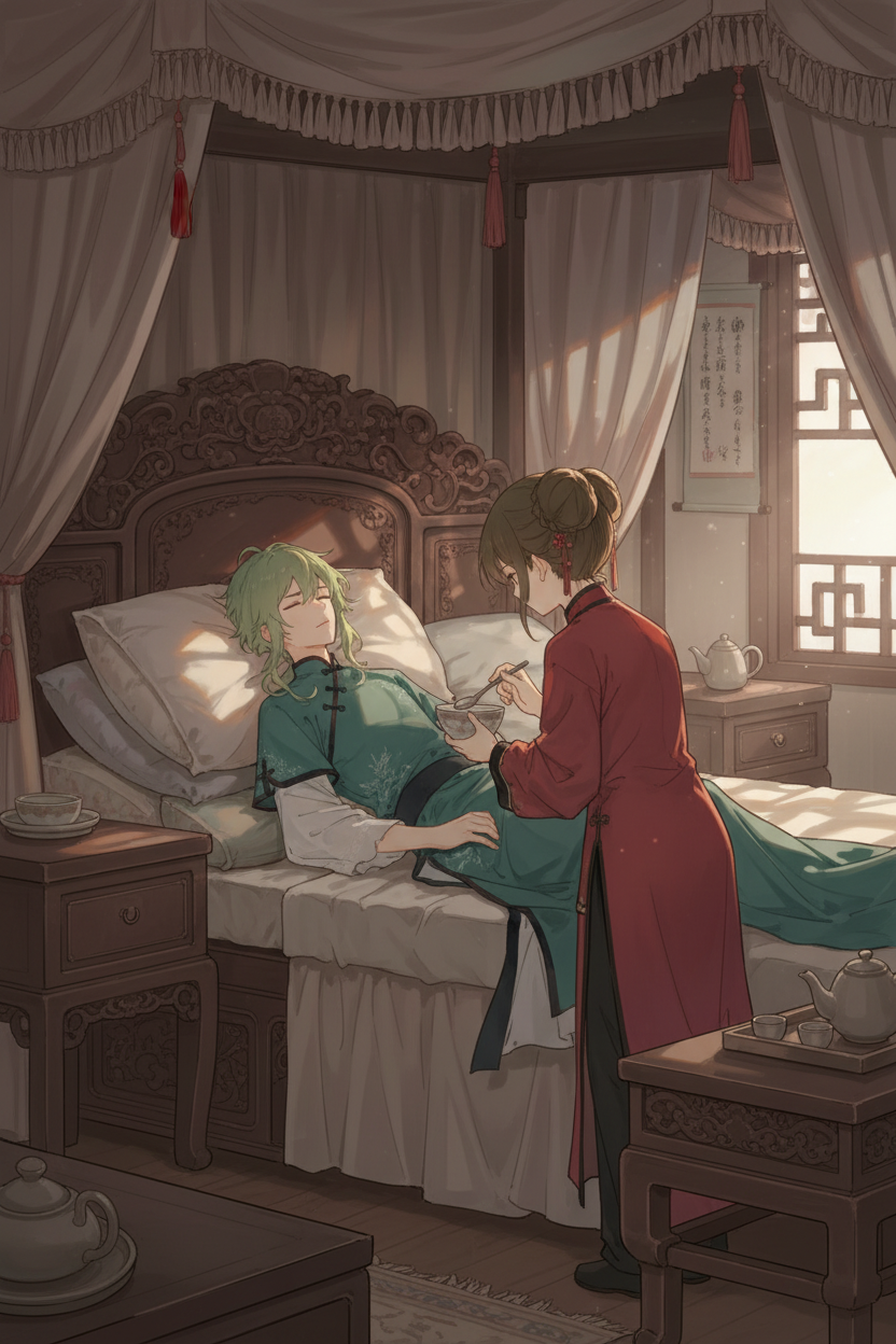 熱にうなされる師匠を助けるために、メイリンは必死に看病を続ける──
