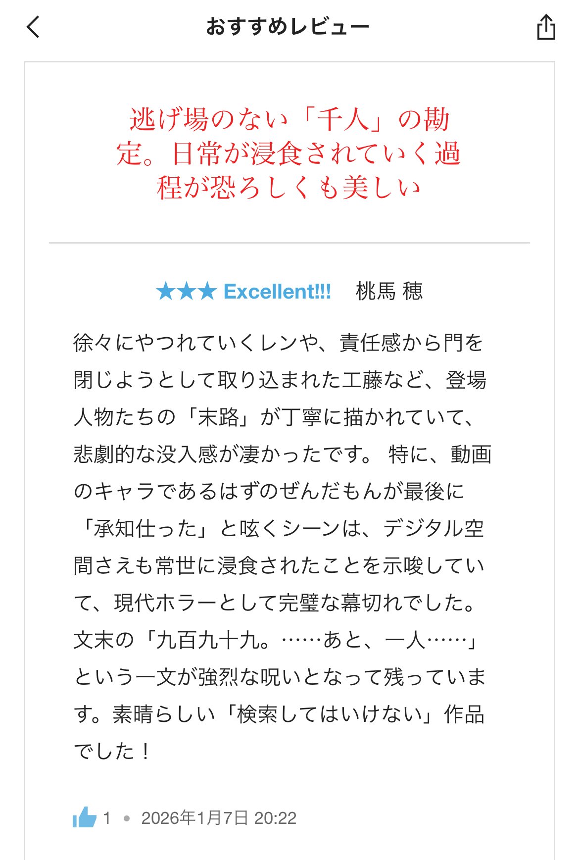 私の作品におすすめレビューをいただきました😊