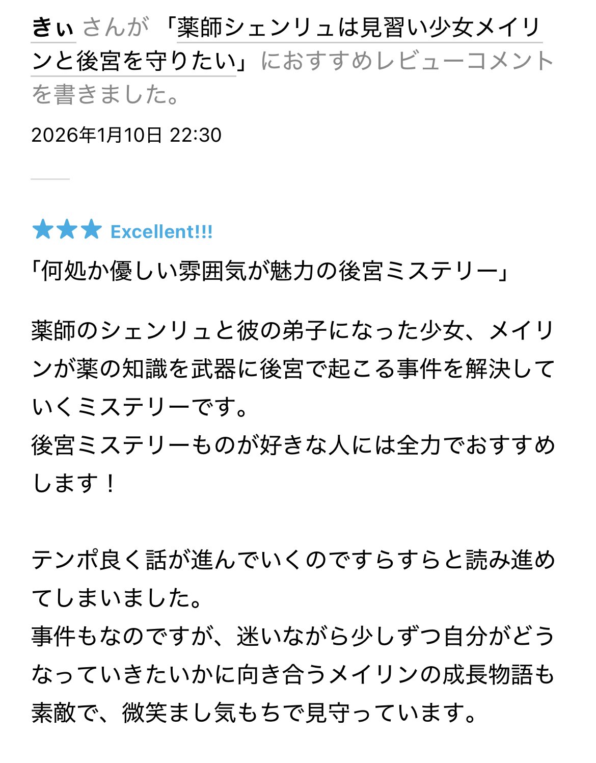 きぃさんから私の作品におすすめレビューをいただきました😊