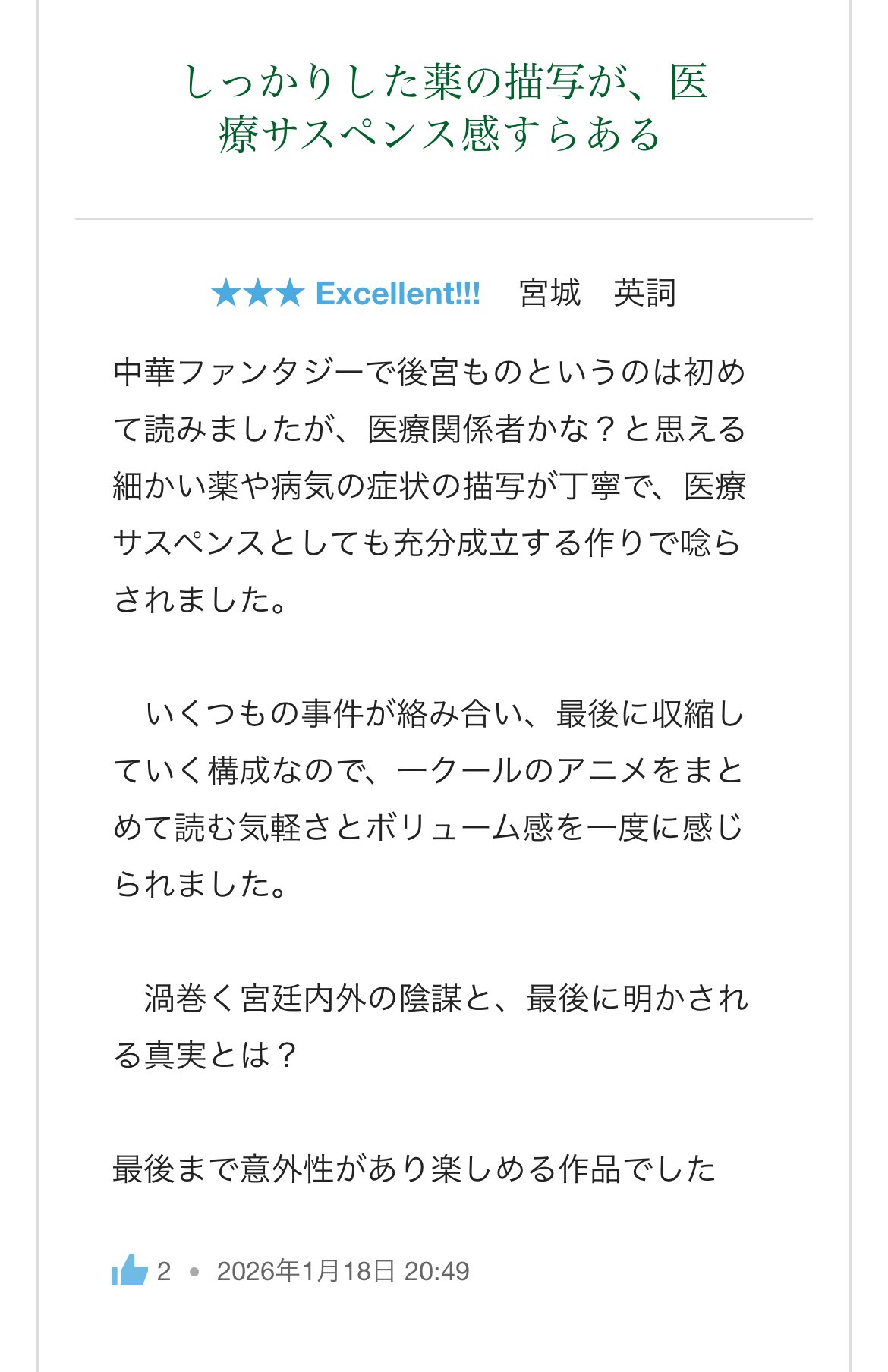 宮城 英詞さんから私の作品におすすめレビューをいただきました😊