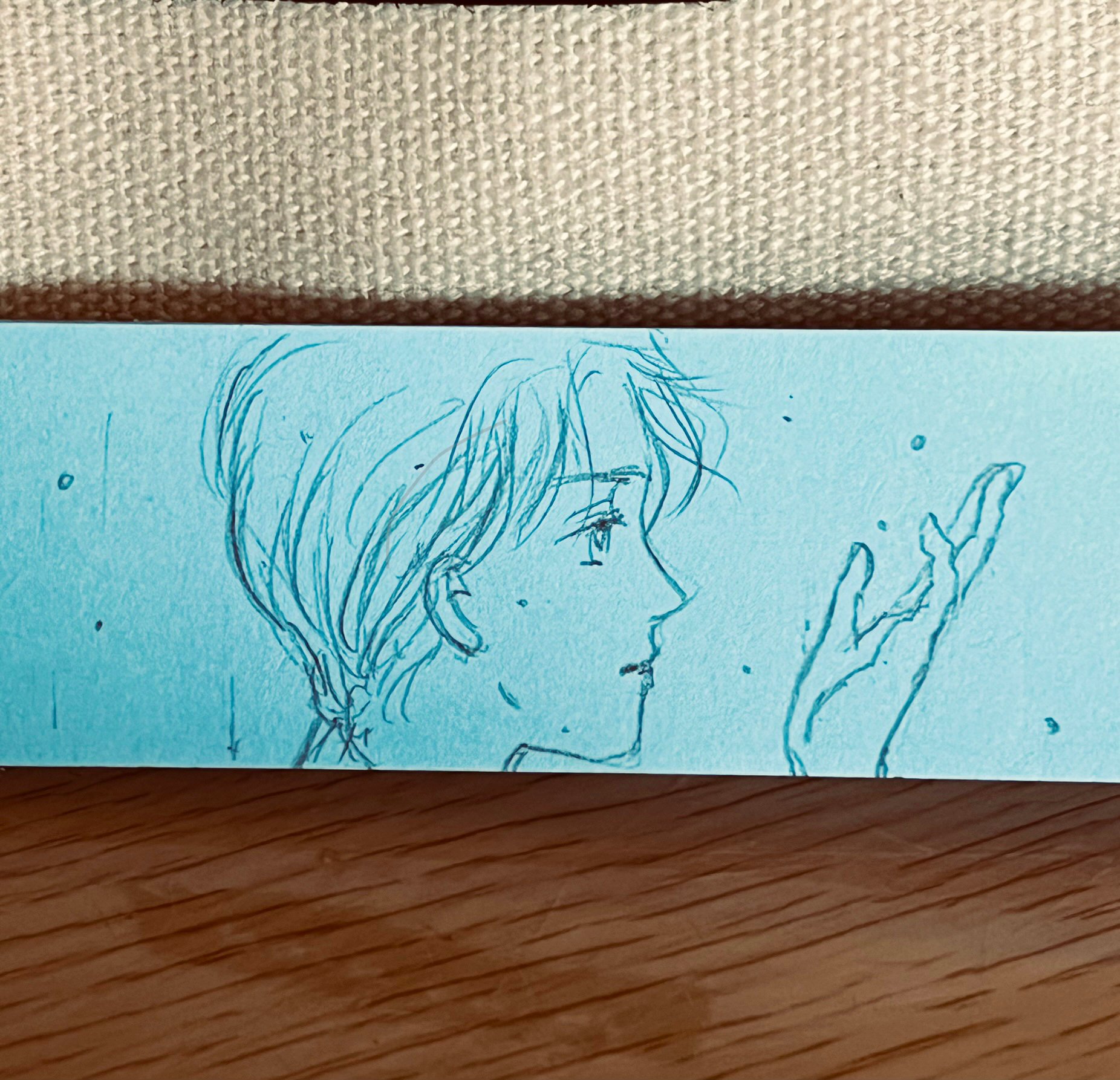 ↓文章はまとまった時間がないとかなかなか書けませんが、落書きは僅かな隙間時間に描けるのが素晴らしい♡というわけで、『雨男と雨の神』のアンラッキーDKである旭の付箋落書きです。