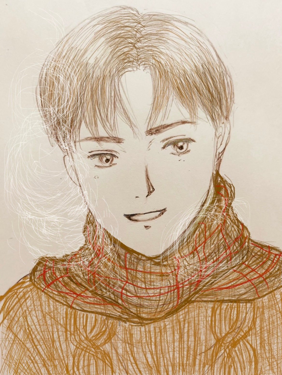 ニットの柄等の描き込みはなかなかしつこく時間をかけました^^;(笑)しつこく取り組むうちに少しづつニットっぽく柔らかな風合いが出てくれて、あったかい雰囲気に仕上がりました(*´∇`*)♡