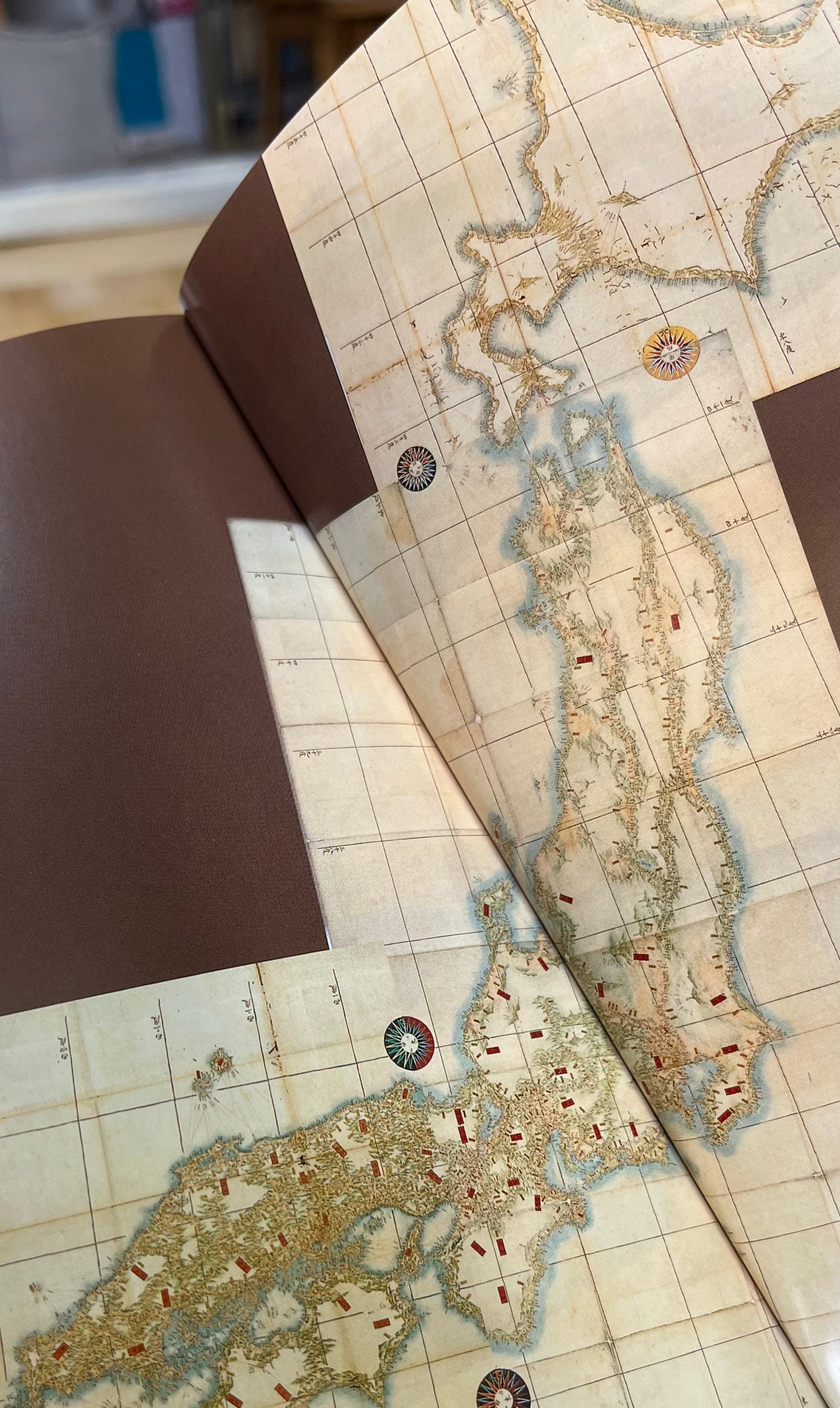↓私の最推しである伊能忠敬の創った地図。江戸時代、55歳から71歳まで10回にわたり全国を歩測して創った地図です。現代の地図と比較してもほとんど誤差がないそうです。2回言います。歩測です。驚異的です。あまりに美しくて痺れます。