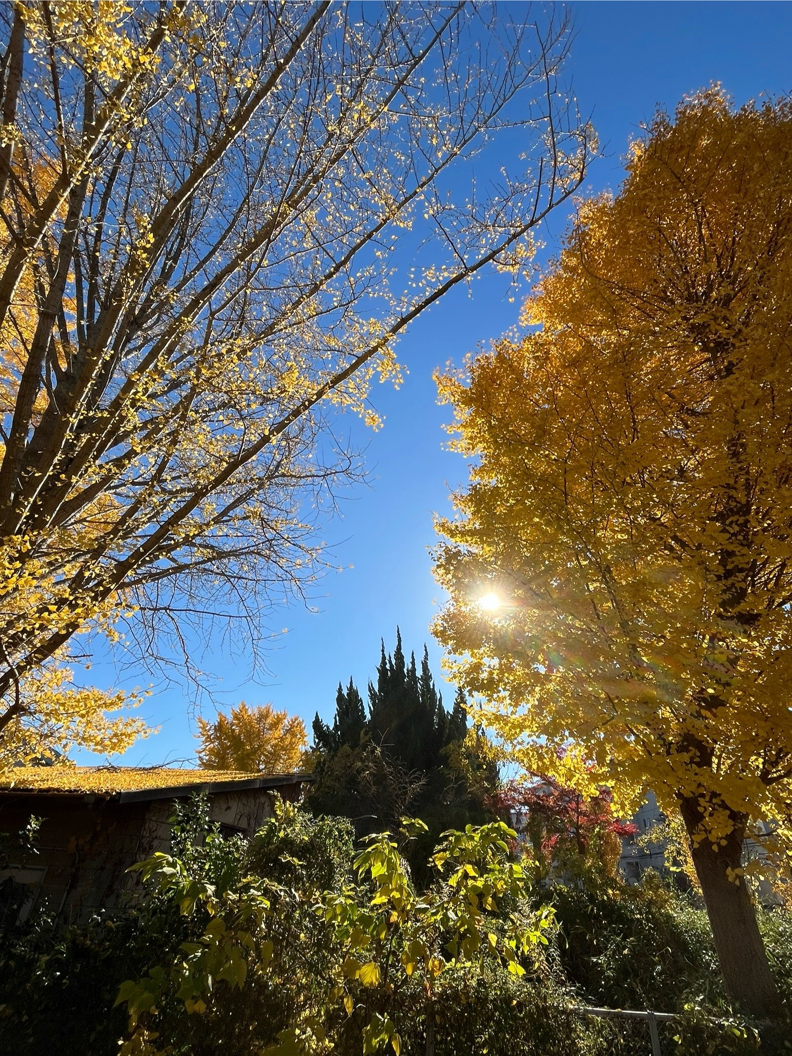 ↓近くの公園の朝の風景。自然はいつも眩しい。