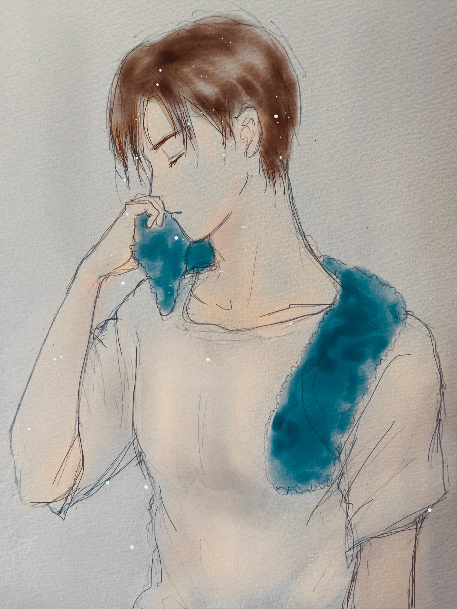 毎日ぽつぽつ詠んでる短歌作品の中の一首『白T』のイメージ落書きです。
