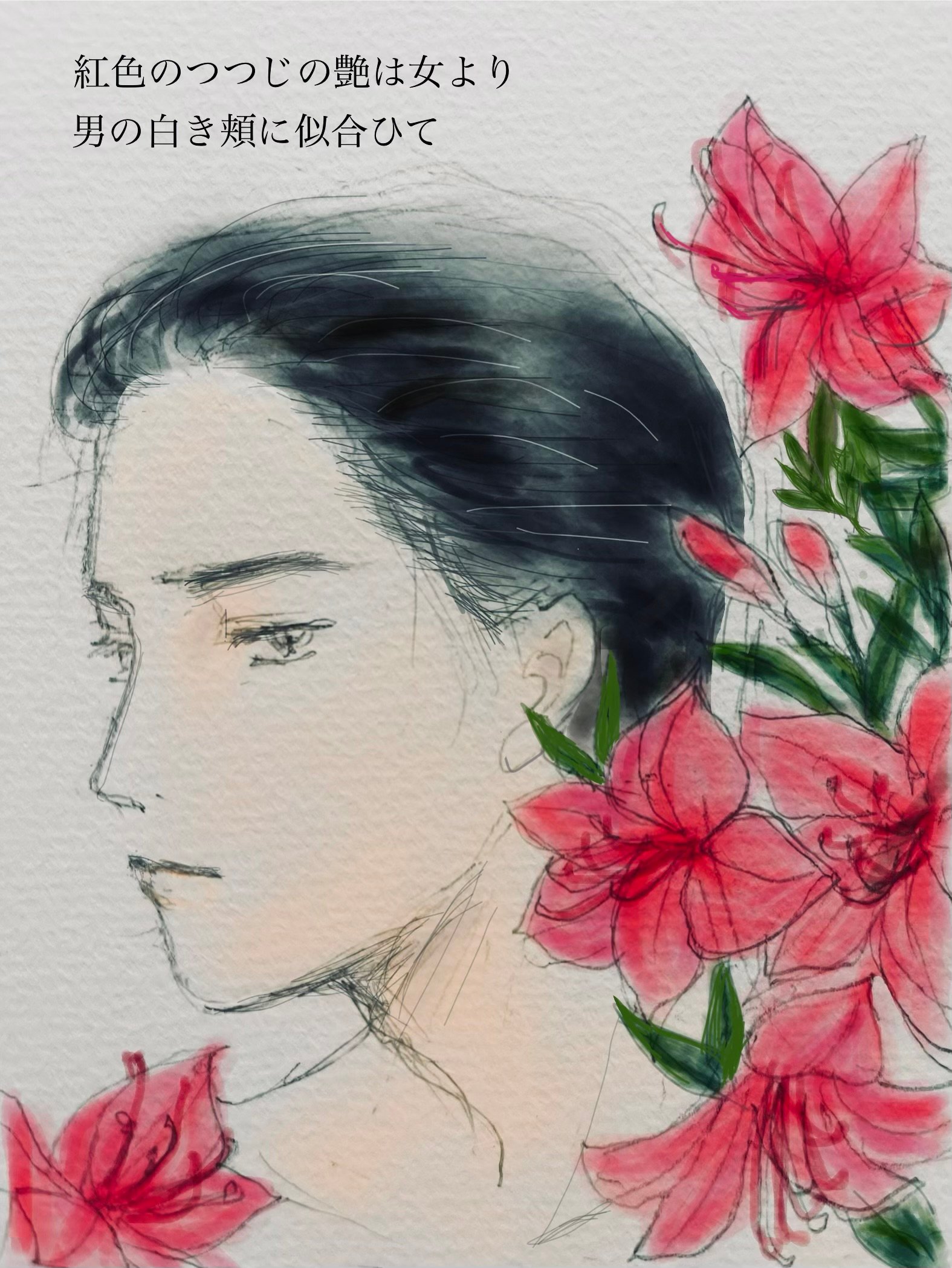紅色のつつじの艶は女より男の白き頬に似合ひて/あおい