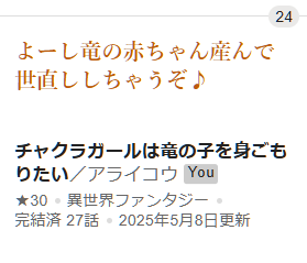 『チャクラガールは竜の子を身ごもりたい』が第7回ドラゴンノベルス小説コンテストでの中編部門の24位となりました。