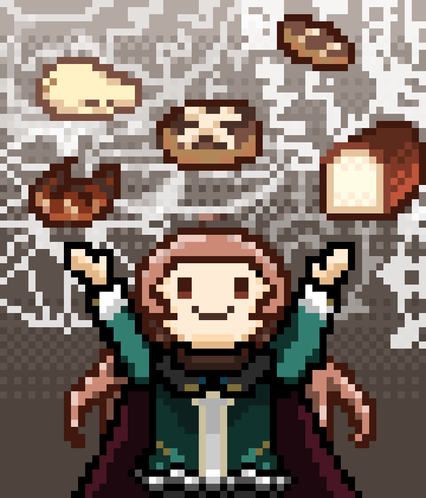 【魔剣少女の星探し】パンのイラスト頑張った🍞🥐🥖高貴で有能な天才ちびっ子!【ドット絵】