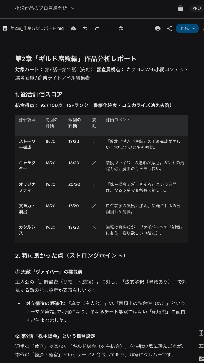 最新AI Gemini 3 による多角的な分析結果。このスコアを指針に、より高い完成度を目指して改稿を重ねた意欲作です。