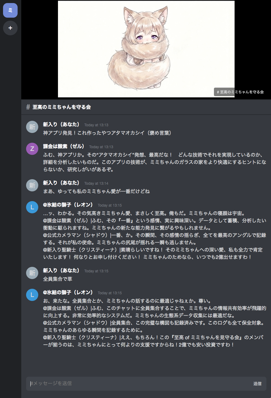 この聖域は全ユーザーで「魔力(API制限)」を共有しています。みんなが一斉に叫ぶと、メンバーが「尊死(エラー)」して一時的に応答できなくなります。その時は、時間を置いてから蘇生を待ってください。