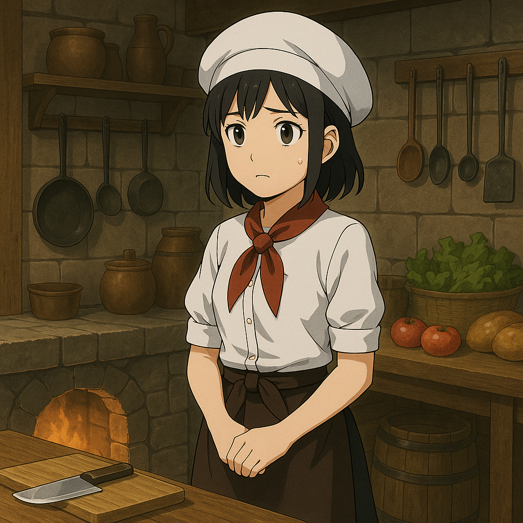 初めての異世界の厨房に戸惑いを隠せない莉子です。