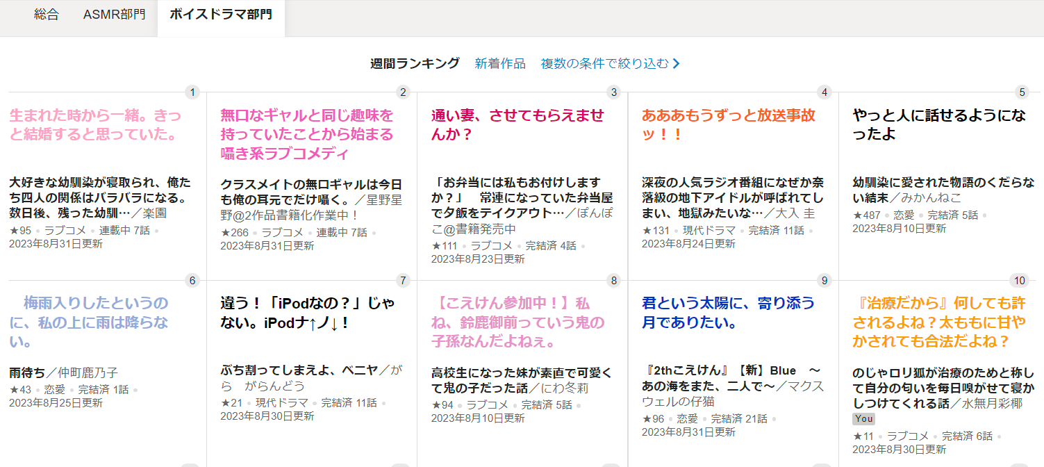 G`sこえけんボイスドラマ部門に応募済みの作品、『のじゃロリ狐が治療のためと称して自分の匂いを毎日嗅がせて寝かしつけてくれる話』ですが、ついに、週間ランキング10位を達成しました! 本当に本当にありがとうございます~!!!