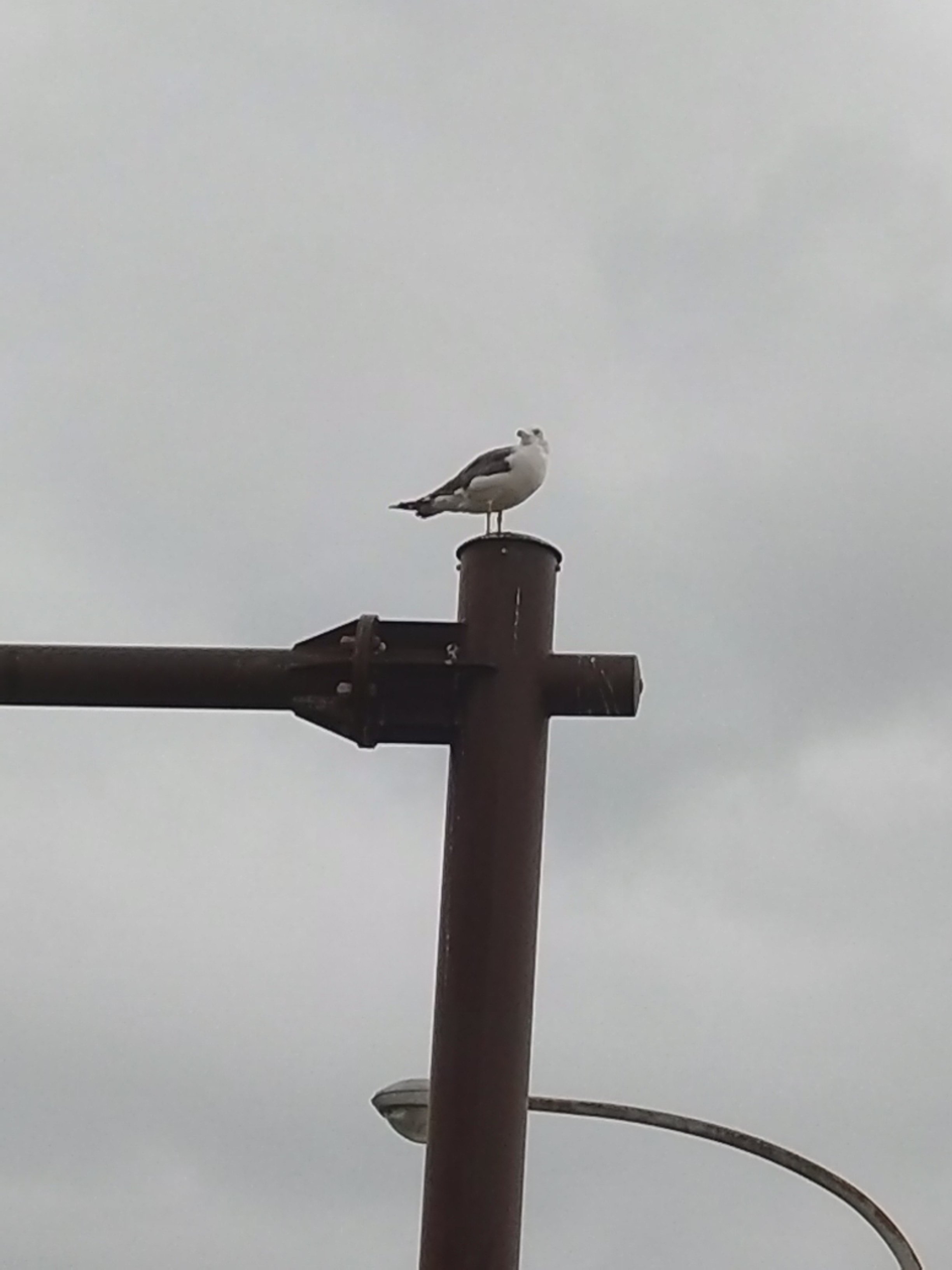 画像は街灯で休んでいたカモメです。