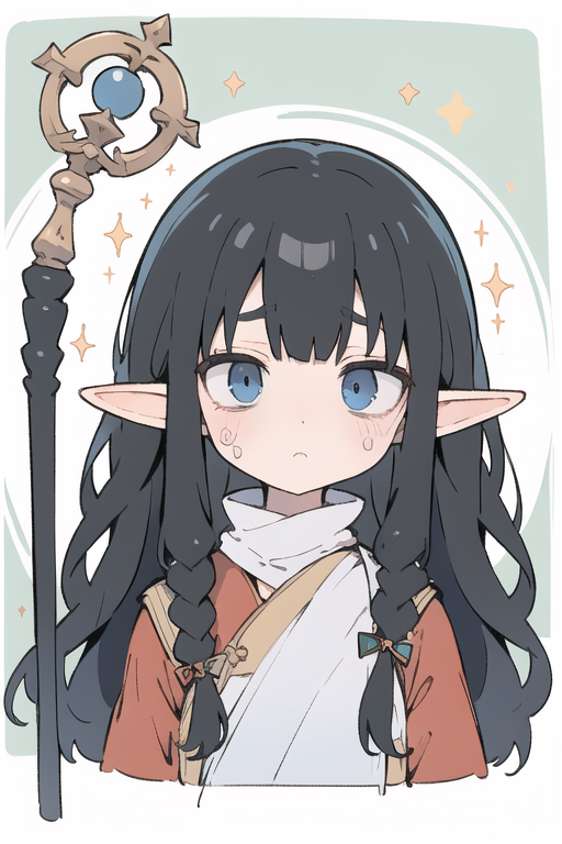 AIイラストで僧侶のエルフを出力したら杖が曲がってた。今の私の気持ちが表れているかもしれない。