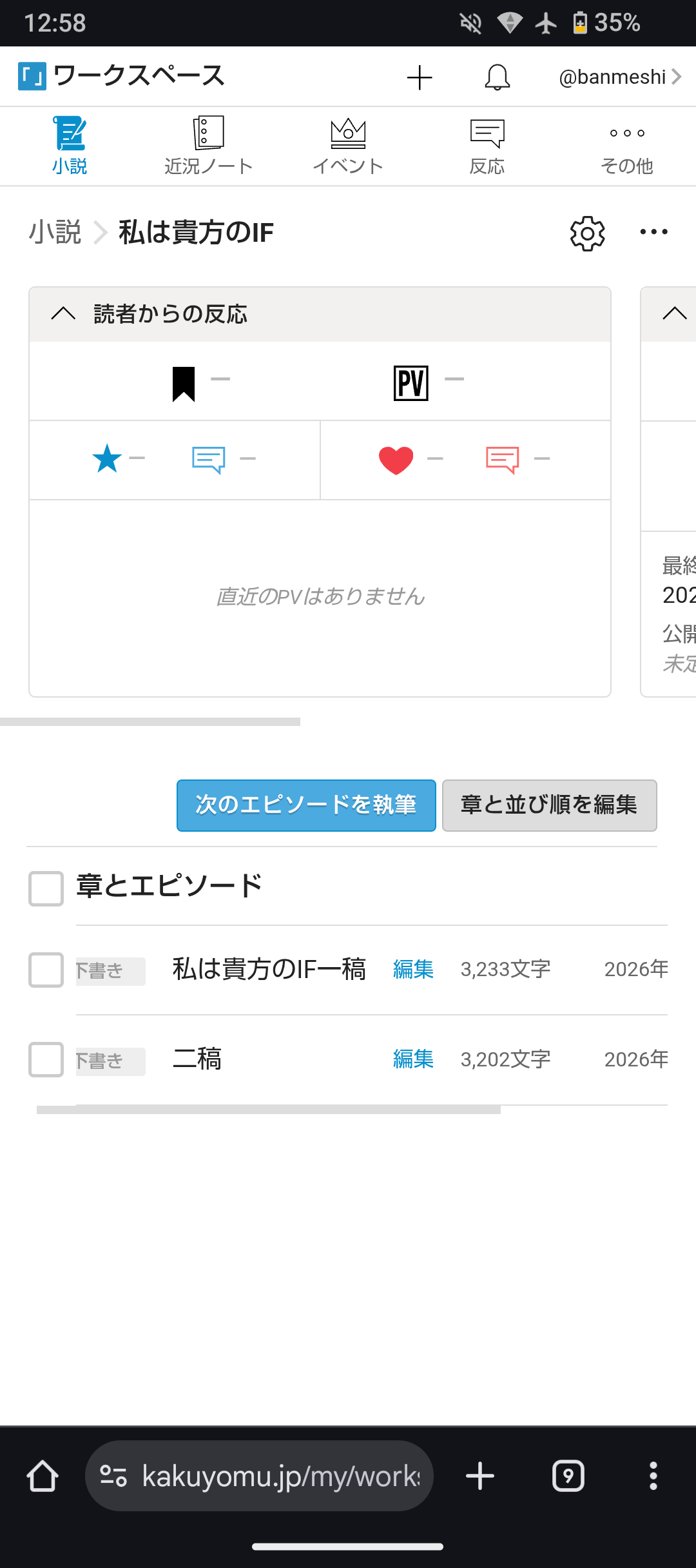 悲しいことに最近投稿した新作2つは悪魔の数字6PVで止まってましてよ。X垢削除したせいもあるのか分かりませんけど、笑えねぇですわ。