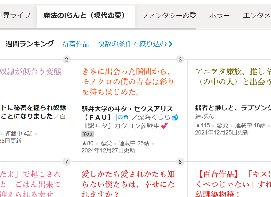 カクヨムコン週間まほあい(魔法のiらんど)ランキングは、3位に留まっております!