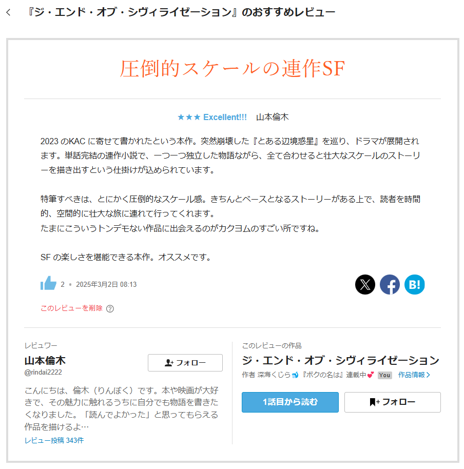 https://kakuyomu.jp/works/16817330659104235379/reviews/16818622170250882803