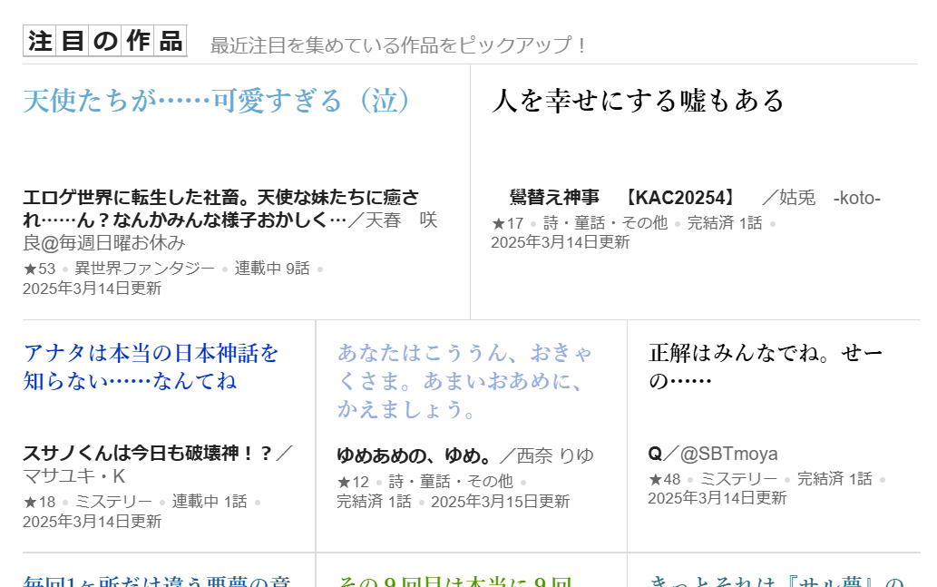 なぜか、このところ毎日のように知っている方の作品がカクヨムトップの「注目の作品」に上がっている。