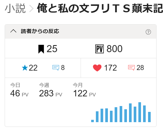 公開12日(連載13話)で800PVを達成できました。