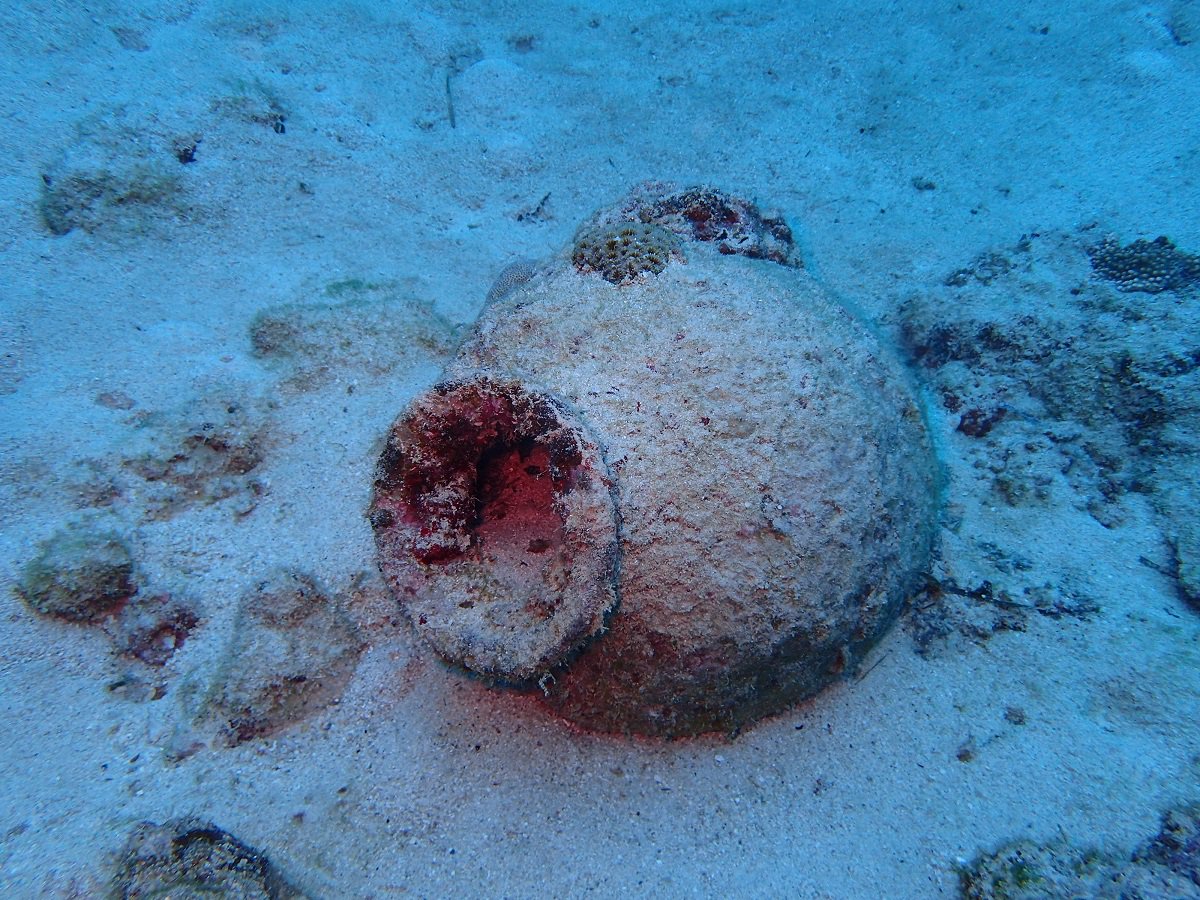石垣島にある、水中文化遺産。江戸時代の壺!避難港に向かう途中に投げ捨てられたものです。ここにもいろんなドラマがあったのだろうなあ。