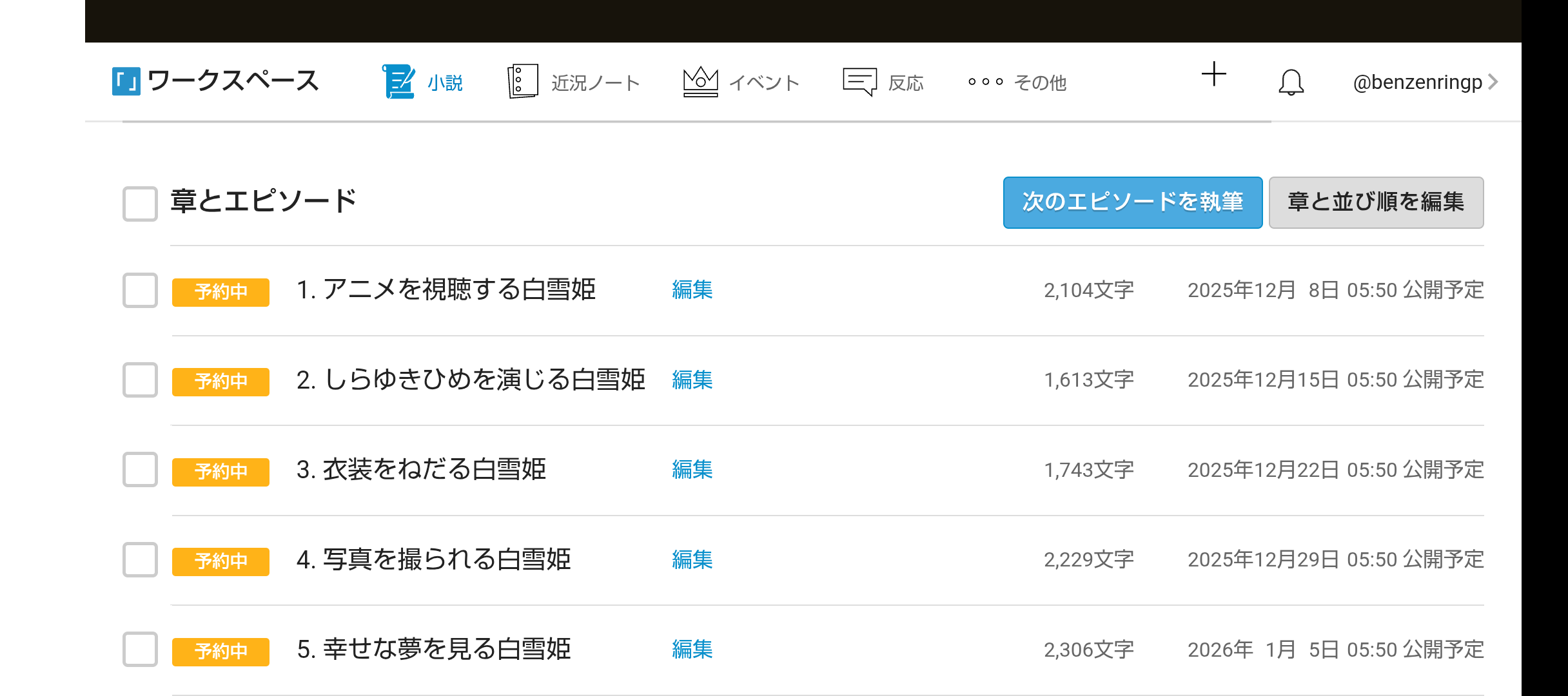 全話投稿完了後にはノートに書きますが、話ごとに投稿報告もしないでおきます。
