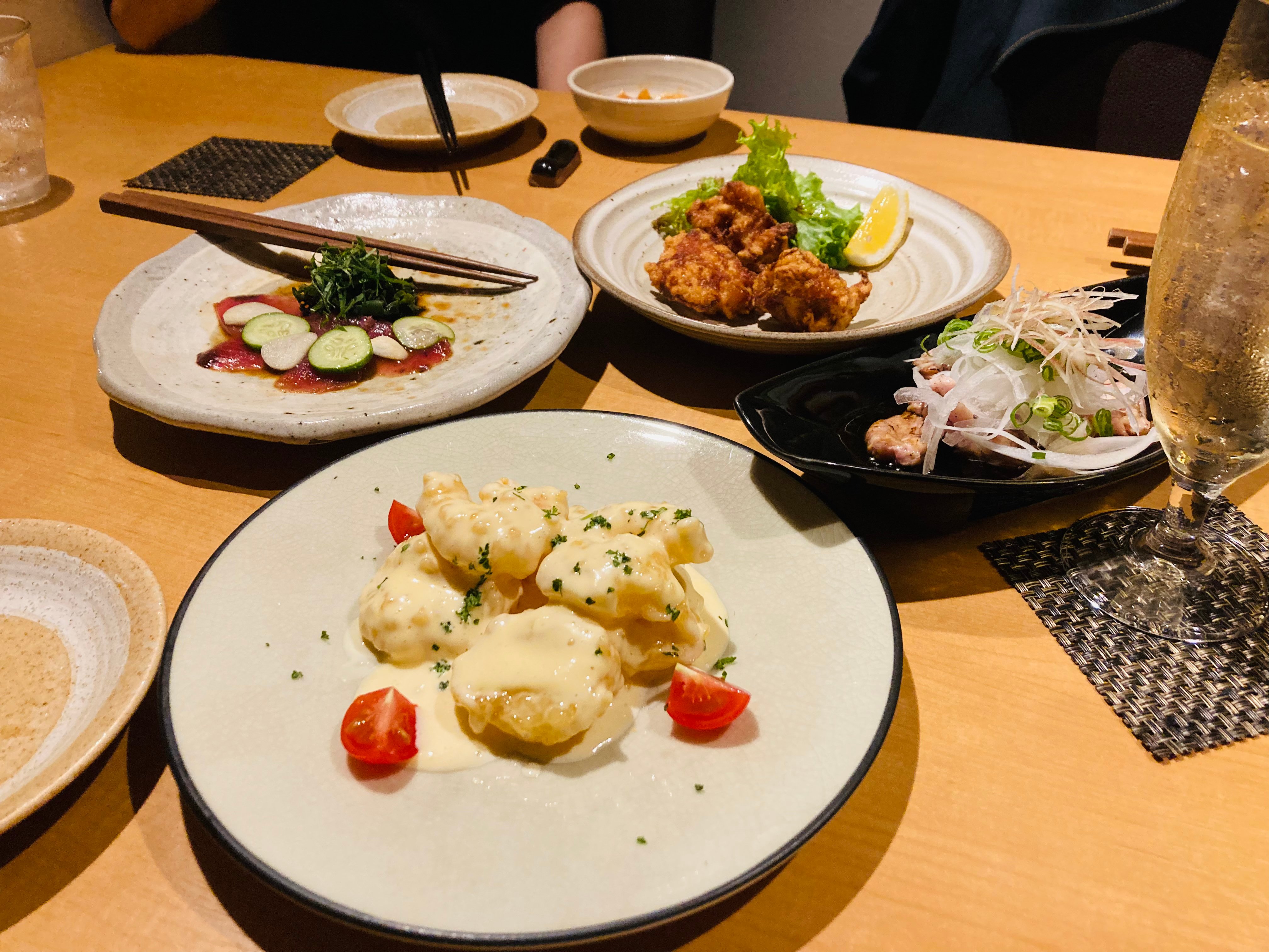 美味しそうですね~♡ 手前のお料理はエビでしょうか? 絶品マヨソース的な? 違ってたらすみません。