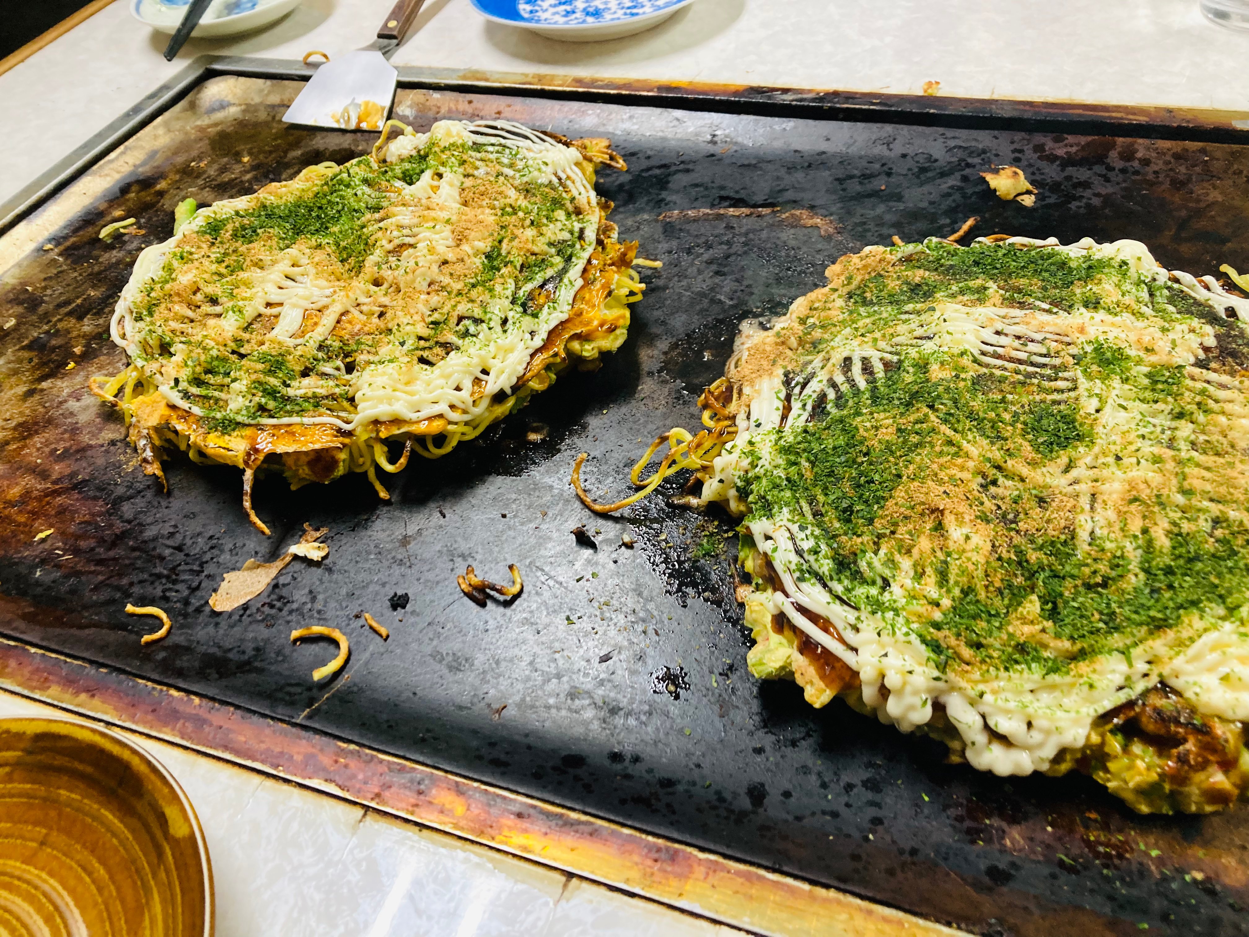 なんか、もう鉄板の使い古し具合が「うちのお好み焼き、うまいで?」って物語ってて、もう!!!!もうッ!!!!