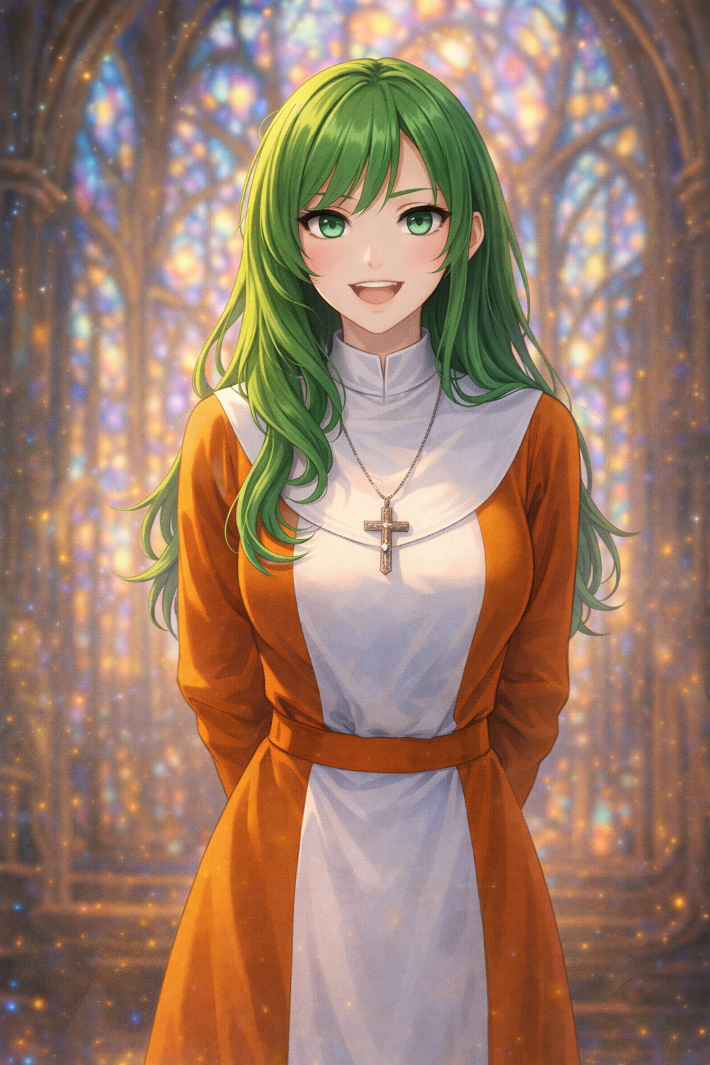 類まれな魔力と聖属性の適性を持つ、緑髪の美少女です。