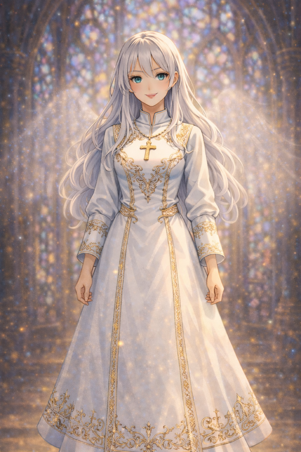 歴代最高峰の魔力と聖属性の適性を持つ、先代の聖女。銀髪に碧眼の美女で、奇しくも主人公ルミナスとどこか似ています。