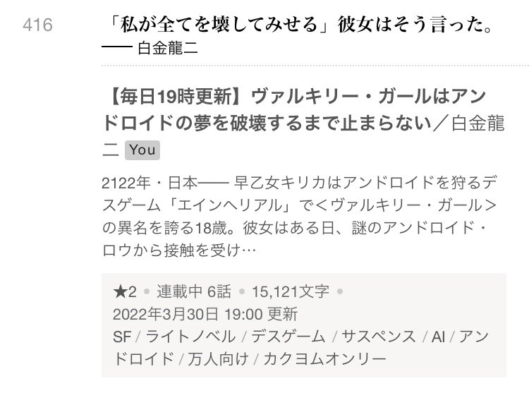 拙作が「SF」タグにランクイン!