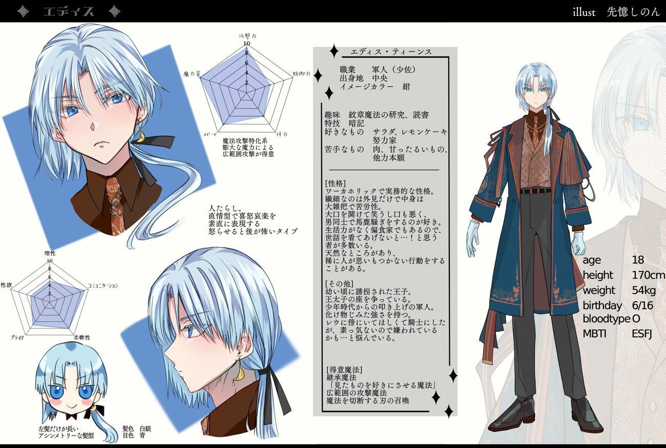 キャラクター一覧に設定画が挟み込めなかったので、近況報告でちまちま公開をさせていただきます。