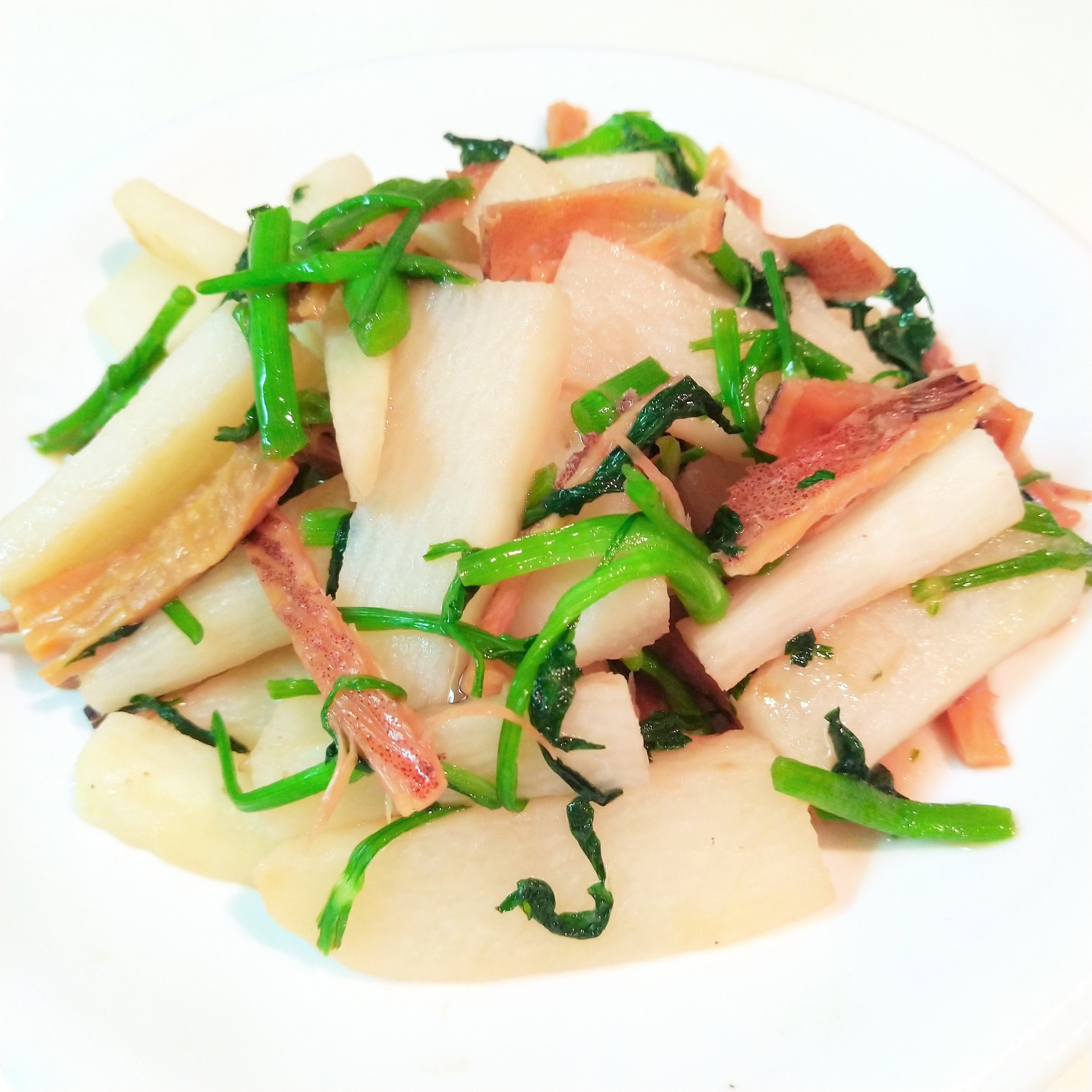 「ラスボスごはん」の第12話~第13話に登場した、「スルメとセリ、山芋の塩炒め」の作り方をご紹介します(*´ω`*)