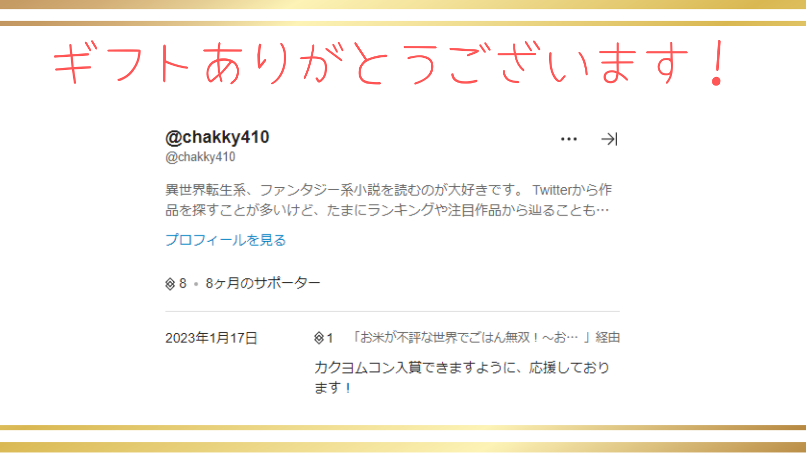 またまたchakkyさんにギフトいただきました!