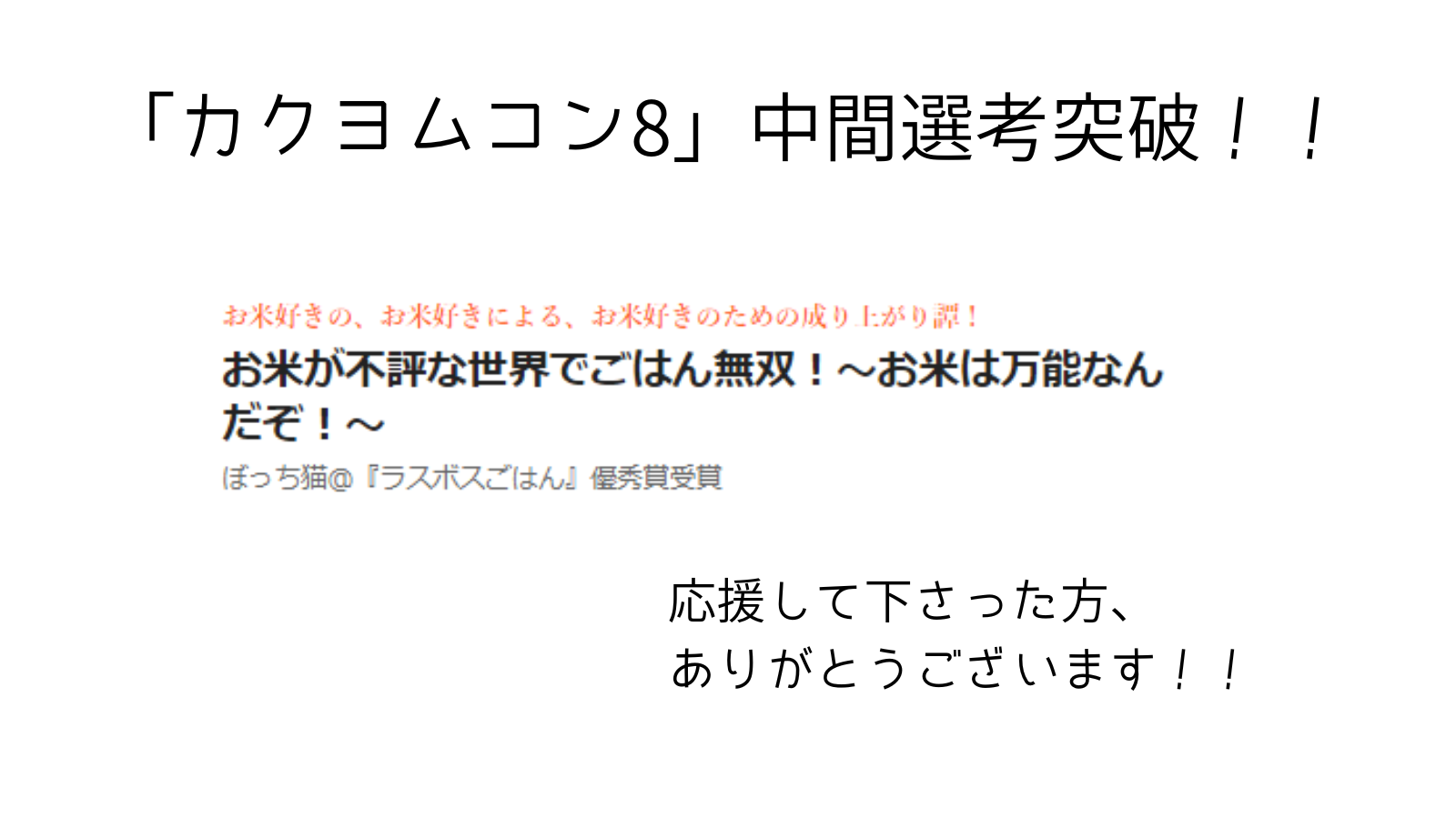 でも「ごはん無双」も以前からいつか書きたい!と温めていた作品なので、こうして評価され、無事中間選考を突破することができて嬉しいです!!