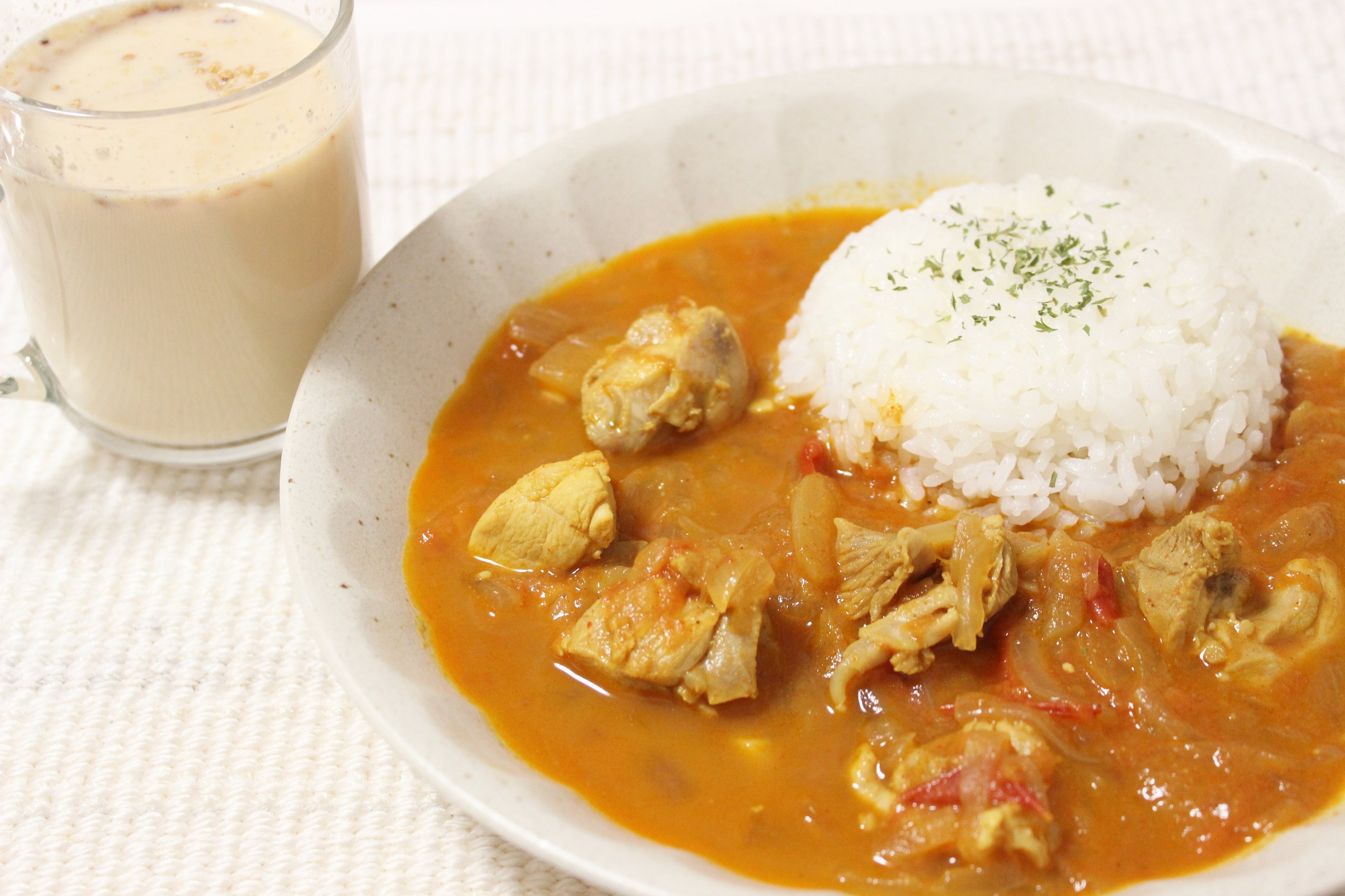「ごはん無双」に登場した、「バターチキンカレー」&「玄米入りほうじ茶のチャイ風ドリンク」の作り方をご紹介します(*´ω`*)