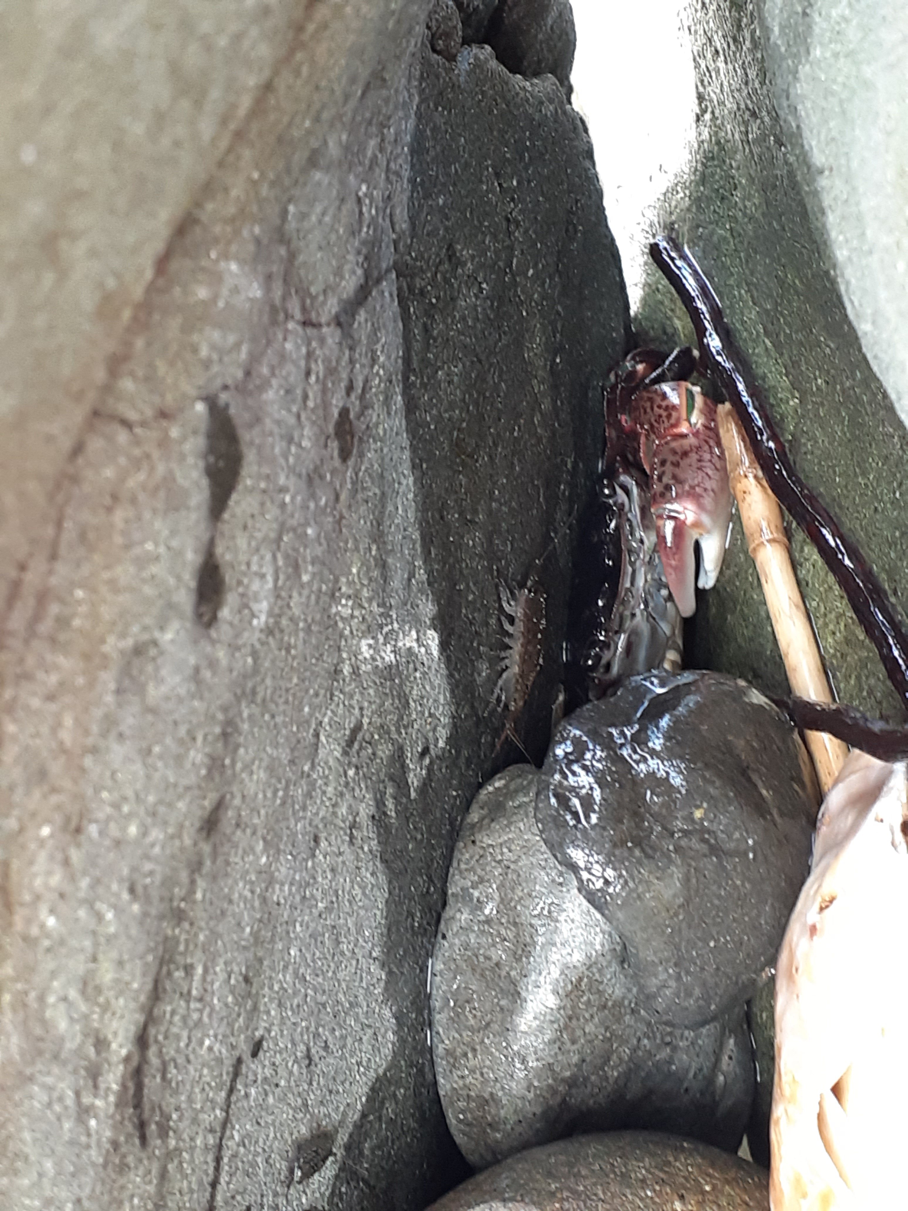 カニがいたので捕まえようとしたら、岩の間に逃げました。