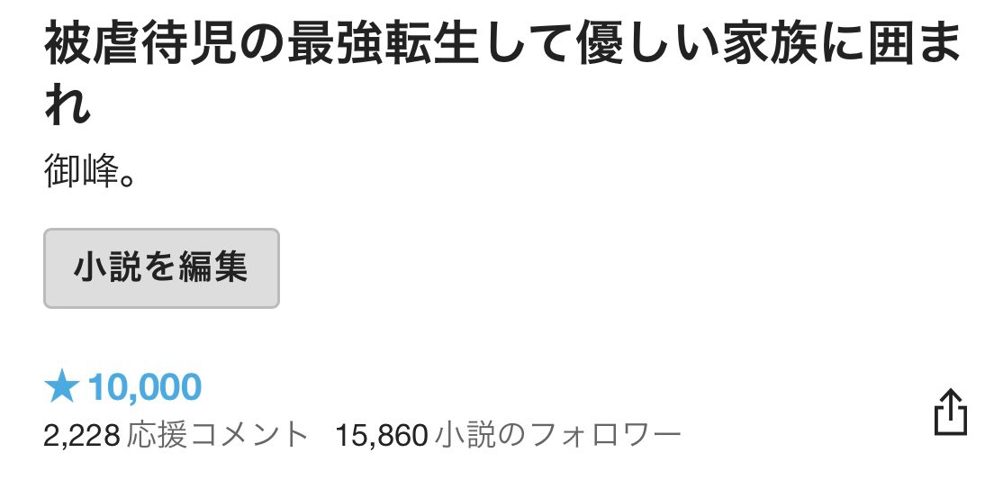 本日、私の処女作でもある被虐待児の最強転生して優しい家族に囲まれが、遂に★10000を達成しました!