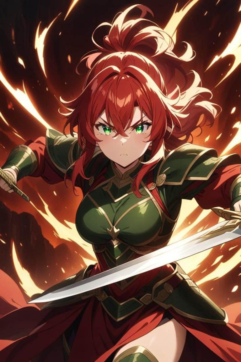 燃えるような背景と力強い眼差しが、主人公の覚悟と情熱をひしひしと感じます。物語のクライマックスを想像させる圧巻のビジュアルから気合をいただきました!