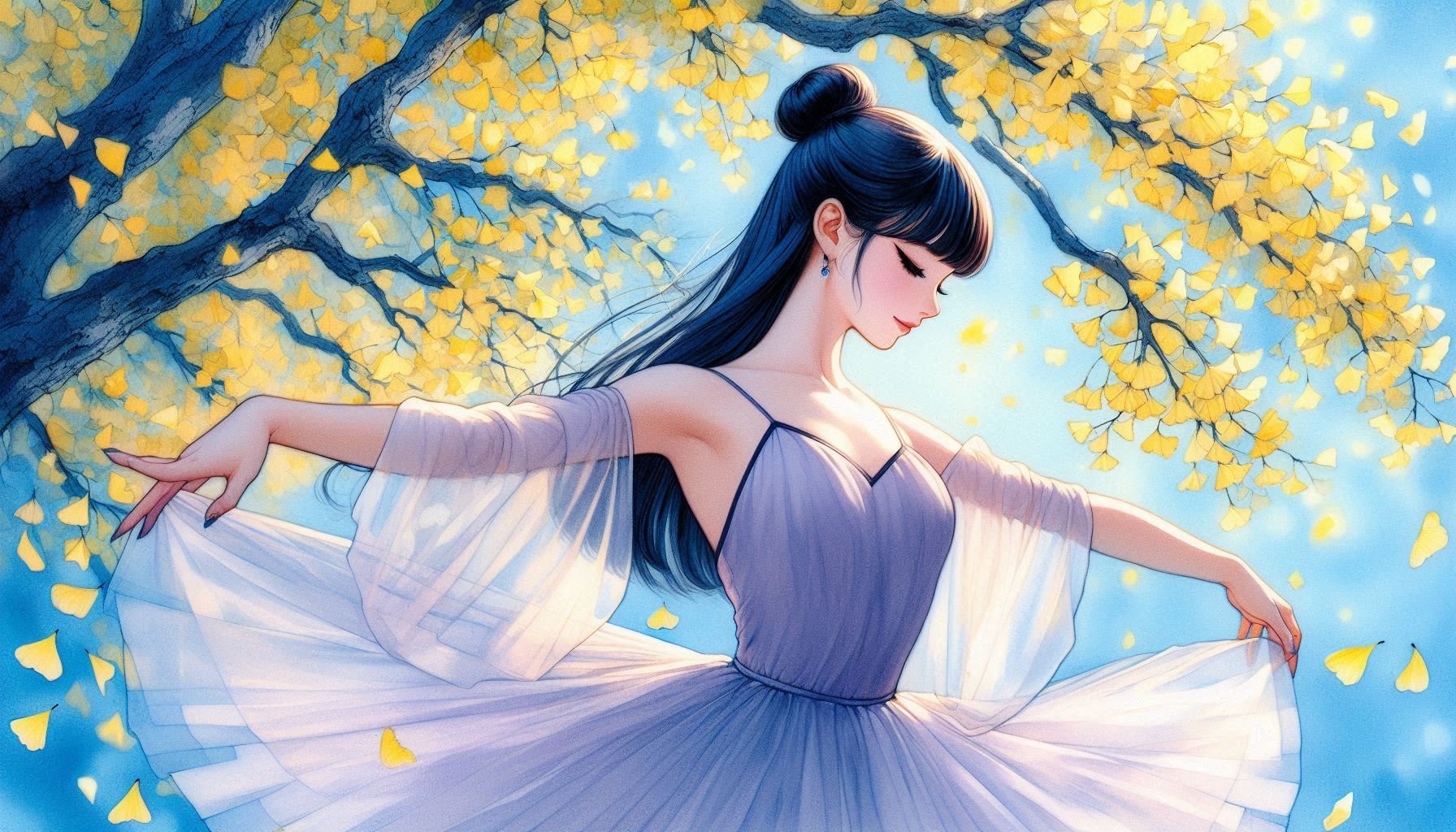 今日のお目覚めイラストは『バレリーナと秋の季節』です🍁