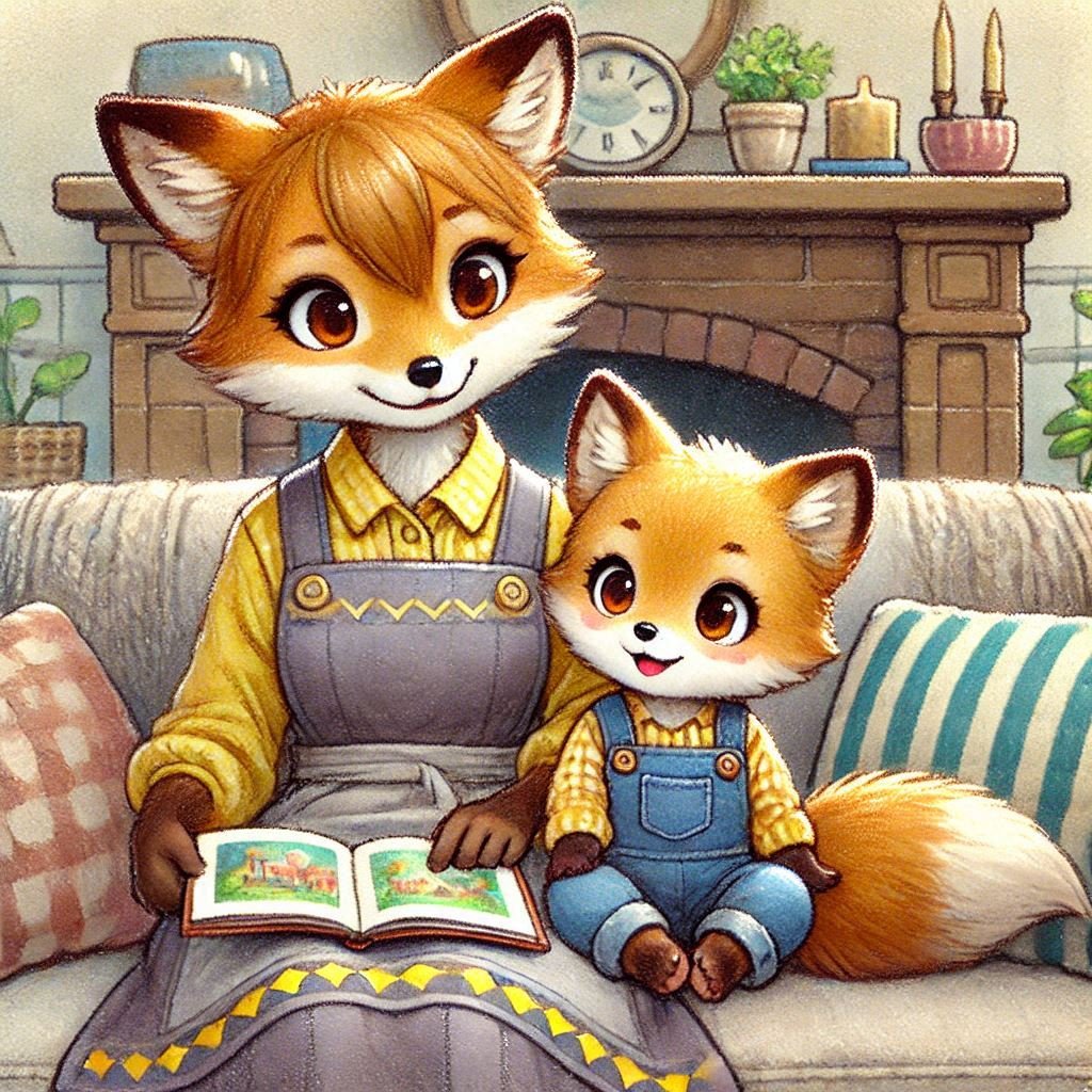 イラストは「コンコンきつねくんのおいなり屋さん🦊🍃」のものではありませんが、狐の親子イラストです🦊📚