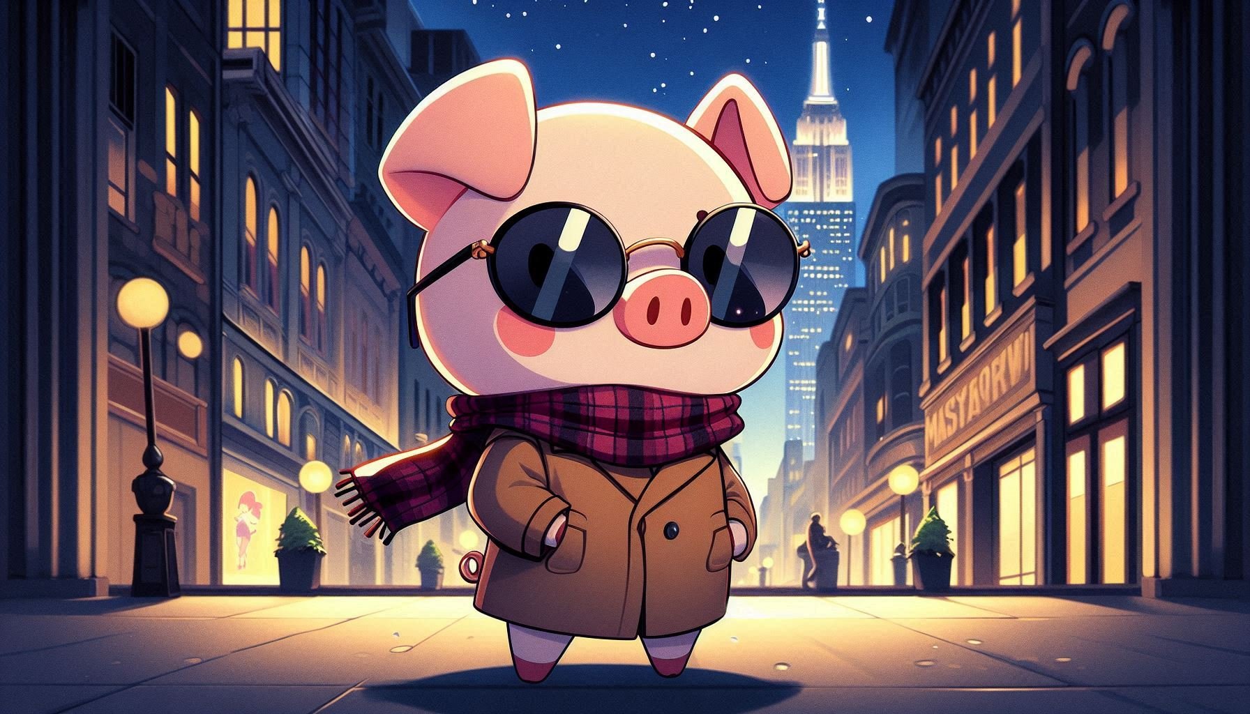 🟧🎨【イラスト】ぶたさん街に行く🐖