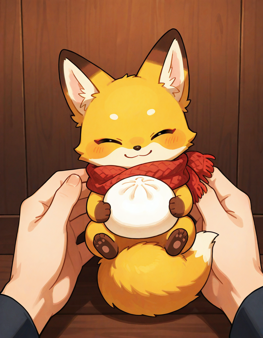 aiイラスト「コンコン手乗りコンちゃんと聖斗さん🦊🧣」