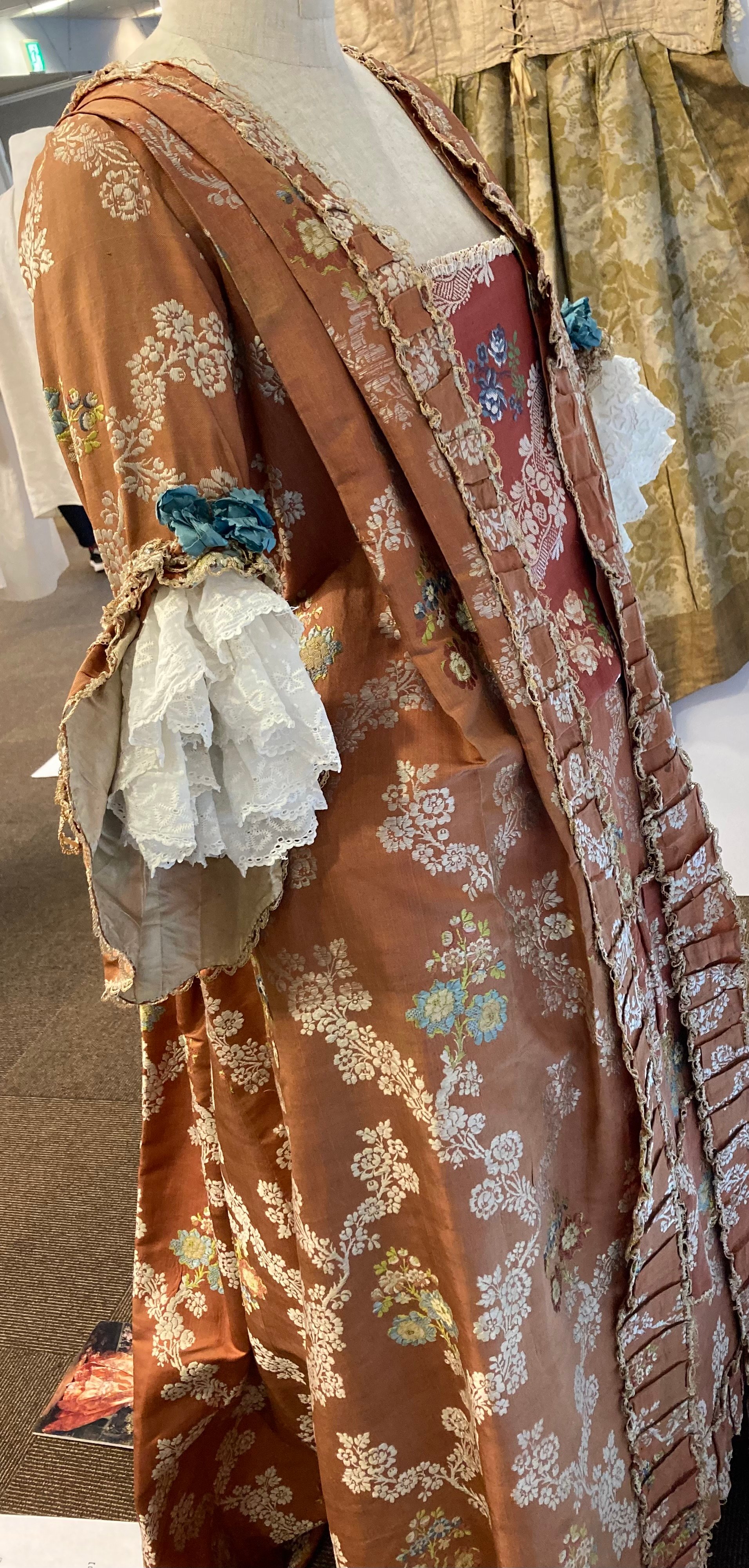 当時のドレスや刺繍に触ってみたり、ドレスの中に金属が仕込んであり左右をひっぱると裾がもちあがり、踊れるようになる仕組みとか。