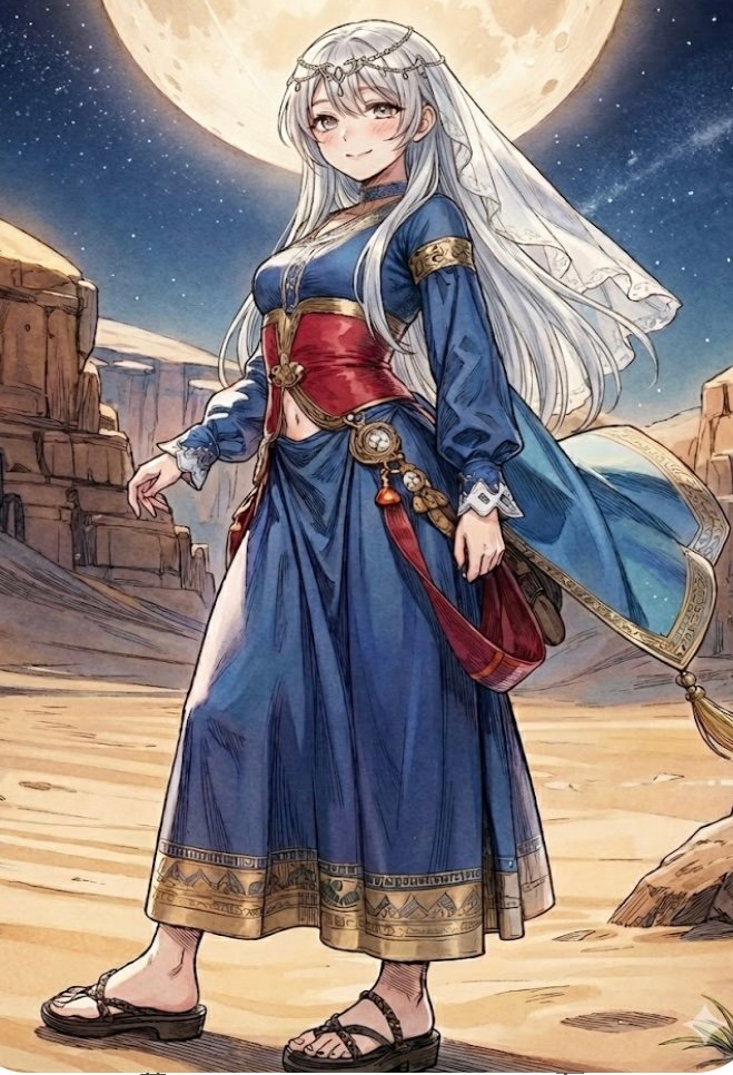 さて、今回は「砂漠に降る銀の月」のイラストを作りました。
