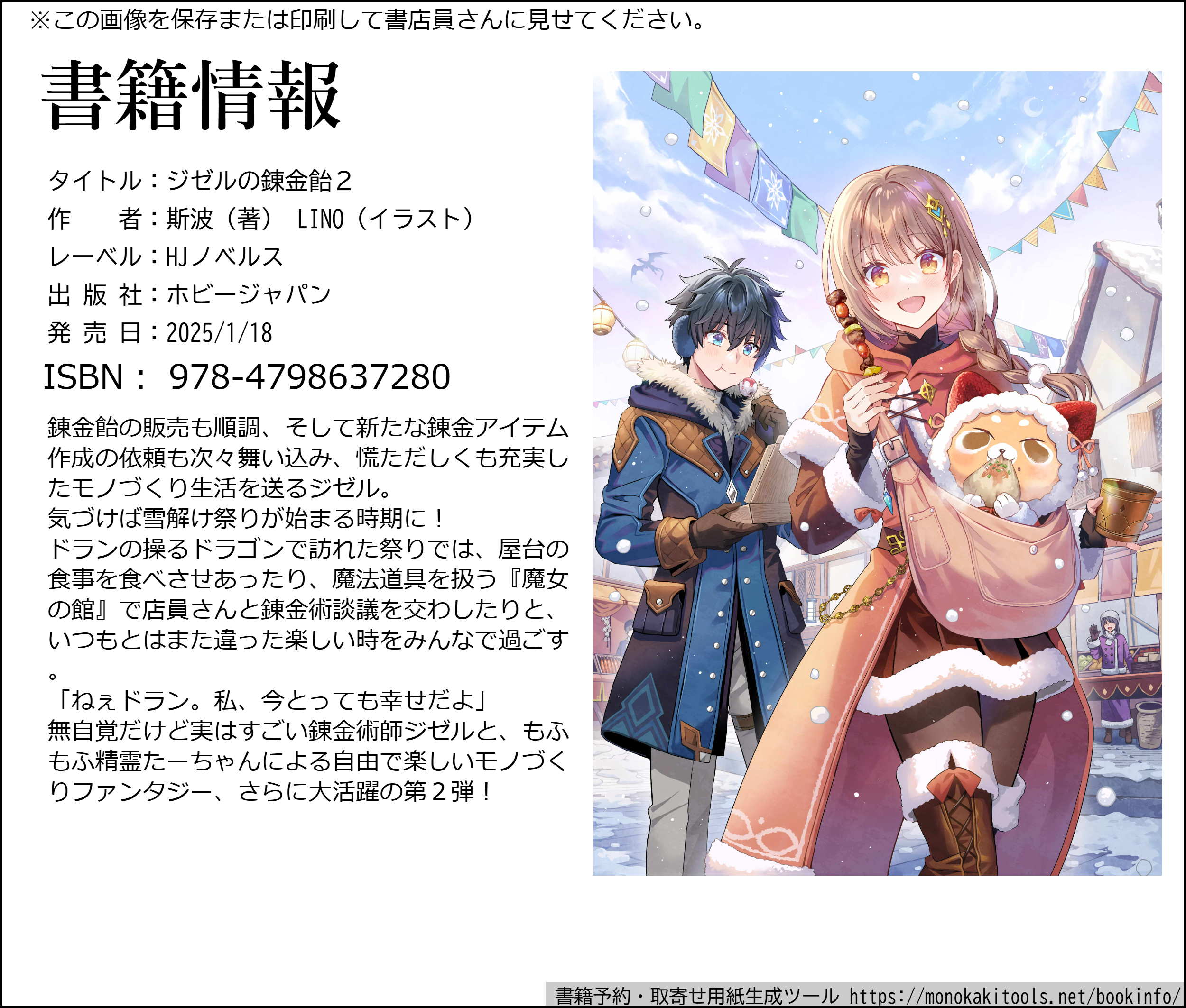 ジゼルの錬金飴二巻 発売日決定&表紙公開されました!
